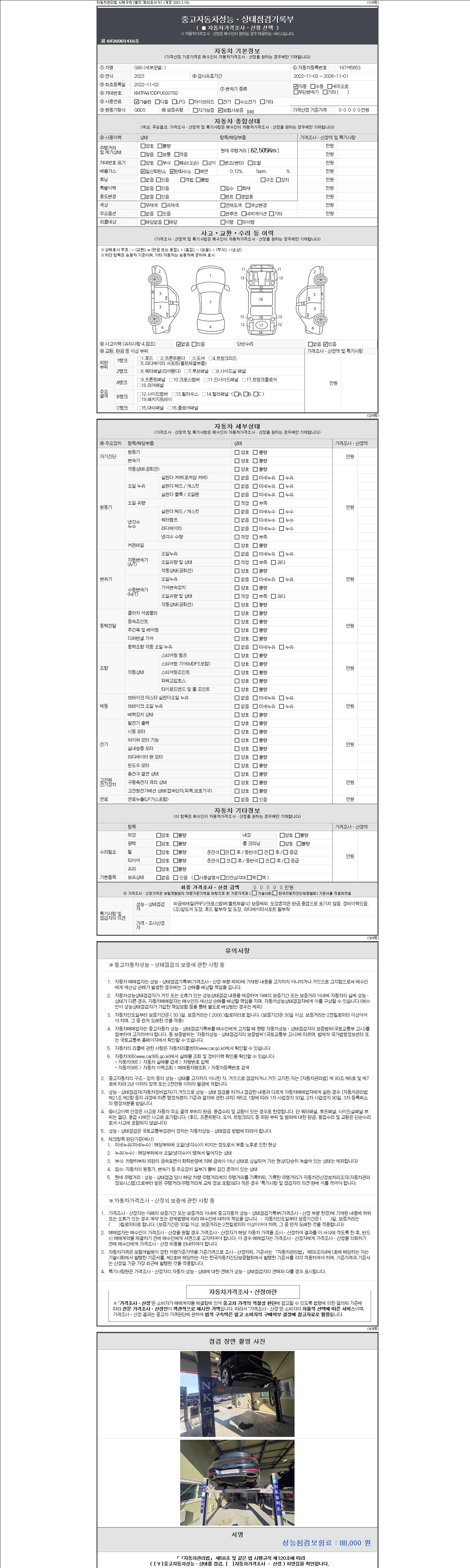 - 2. 차량 등록증이나 성능점검지 등을 상담자에게 요청및 확인하시고 사전에 미리 점검 하시기를 권유드립니다.