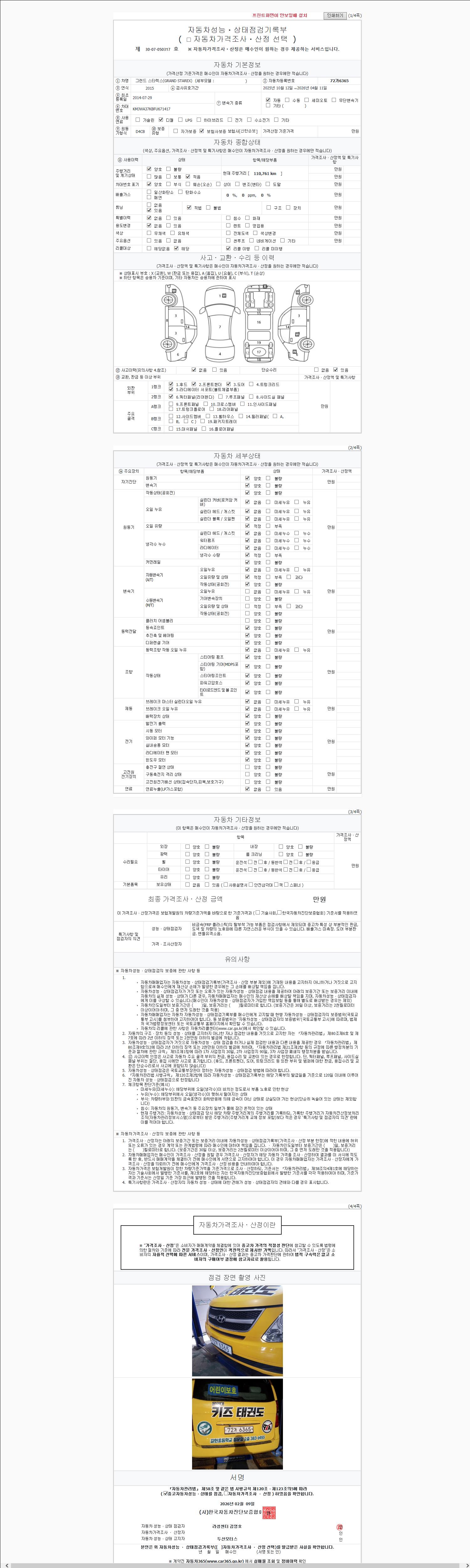 | 주행거리 | 106,763 km | 차량번호 | 72가6365 | 사고유무 | 성능기록부 참조 | 제시번호 | 제 2147483647 호 |