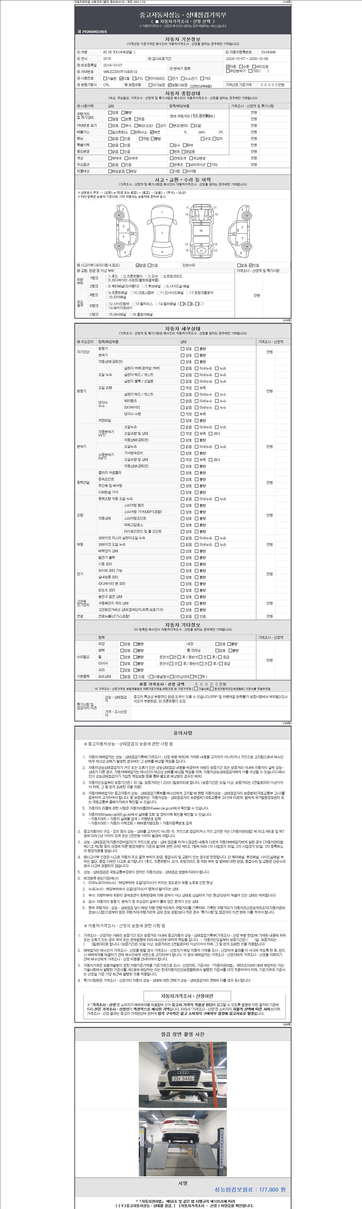 - 2. 차량 등록증이나 성능점검지 등을 상담자에게 요청및 확인하시고 사전에 미리 점검 하시기를 권유드립니다.