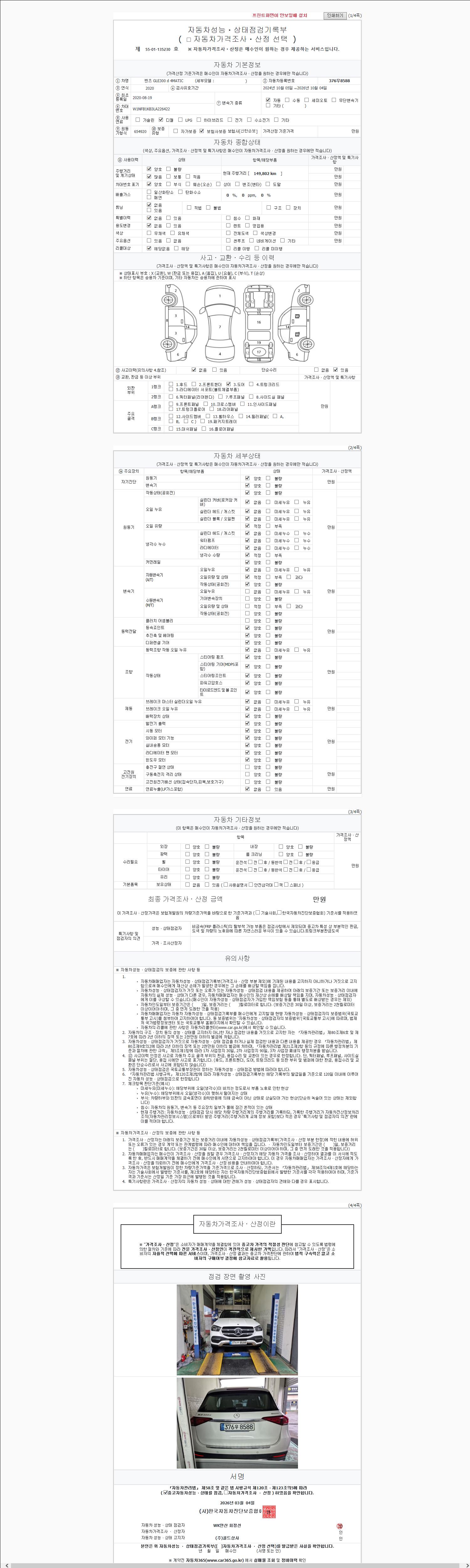 - 2. 차량 등록증이나 성능점검지 등을 상담자에게 요청및 확인하시고 사전에 미리 점검 하시기를 권유드립니다.