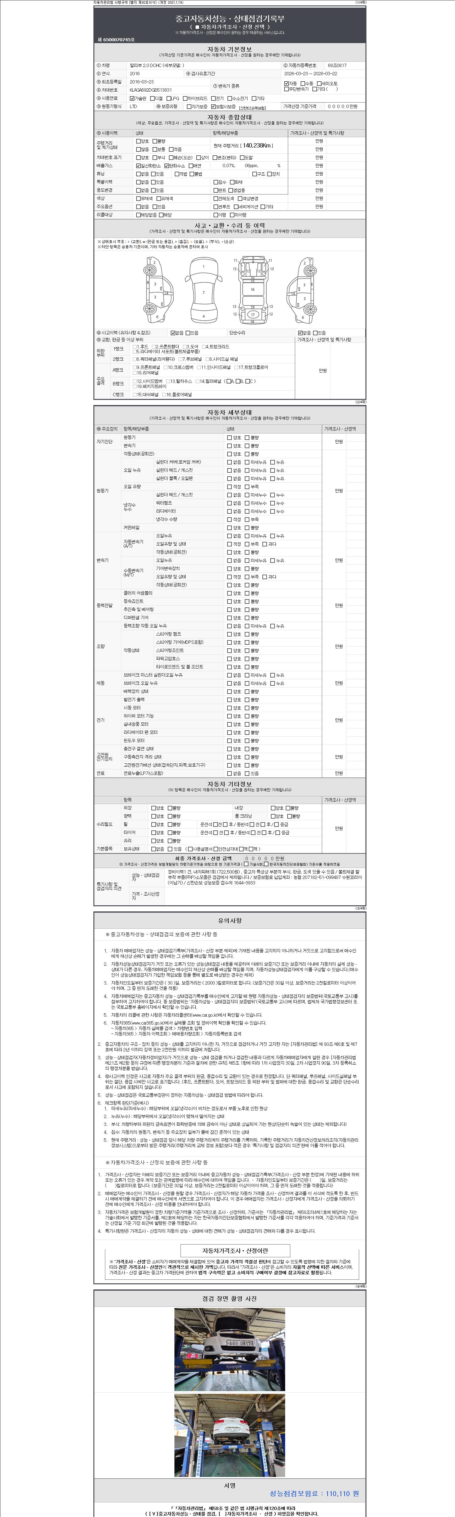 - 2. 차량 등록증이나 성능점검지 등을 상담자에게 요청및 확인하시고 사전에 미리 점검 하시기를 권유드립니다.