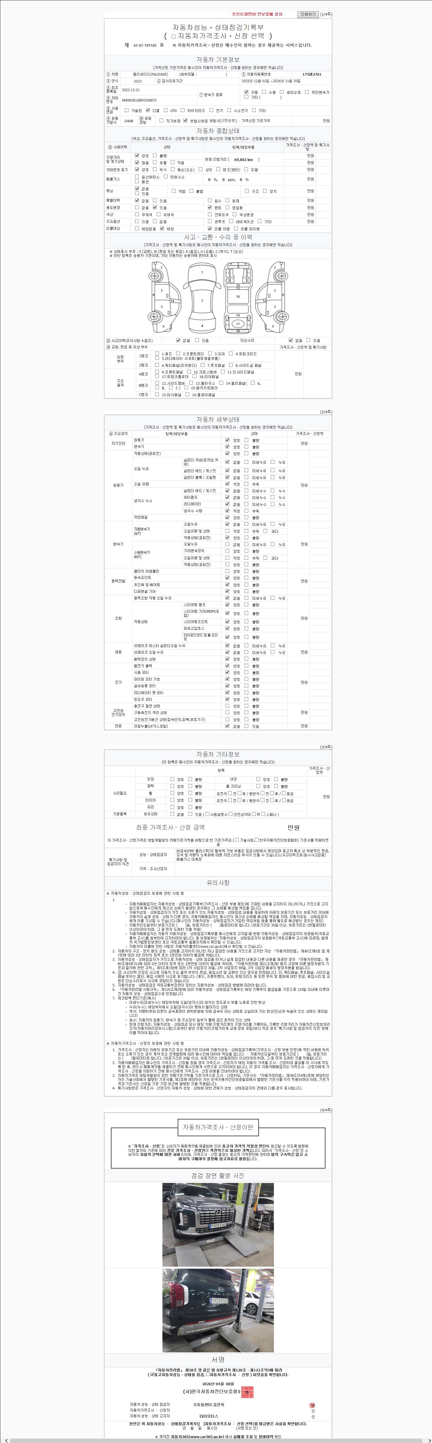 - 2. 차량 등록증이나 성능점검지 등을 상담자에게 요청및 확인하시고 사전에 미리 점검 하시기를 권유드립니다.