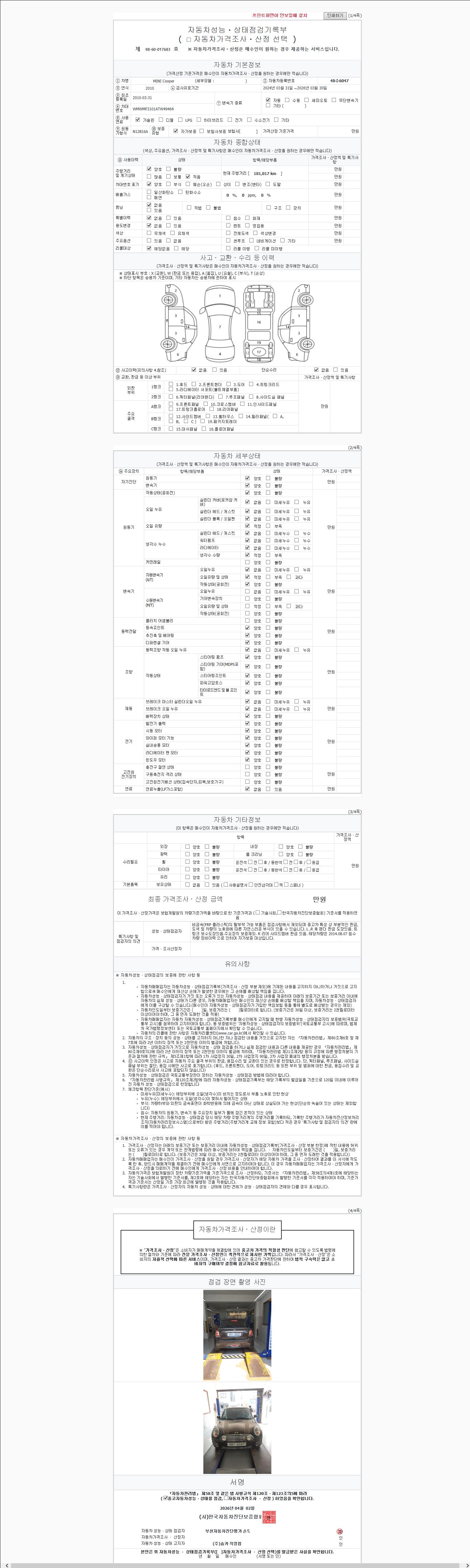 - 사고유무 : 성능기록부 참조