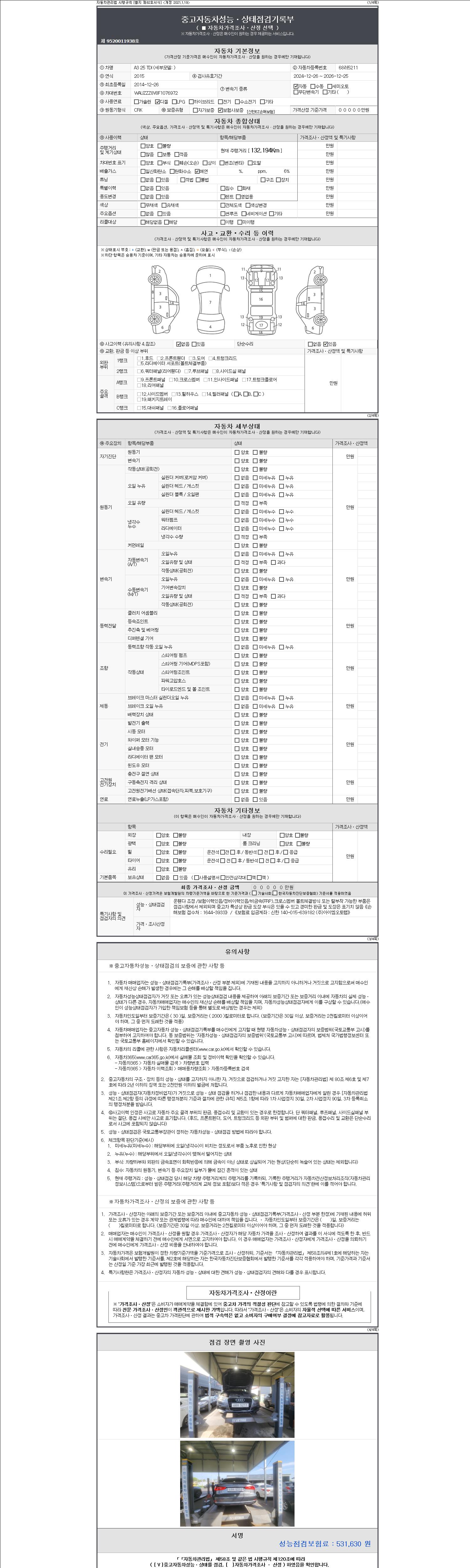 -중고자동차 매매업자를 통해 차량을 구입하실 경우 반드시 "중고자동차 성능, 상태점검 기록부"를 교뷰 받으셔야 하며, 매매업자는 반드시 의무 교부 하여야 압니다.
