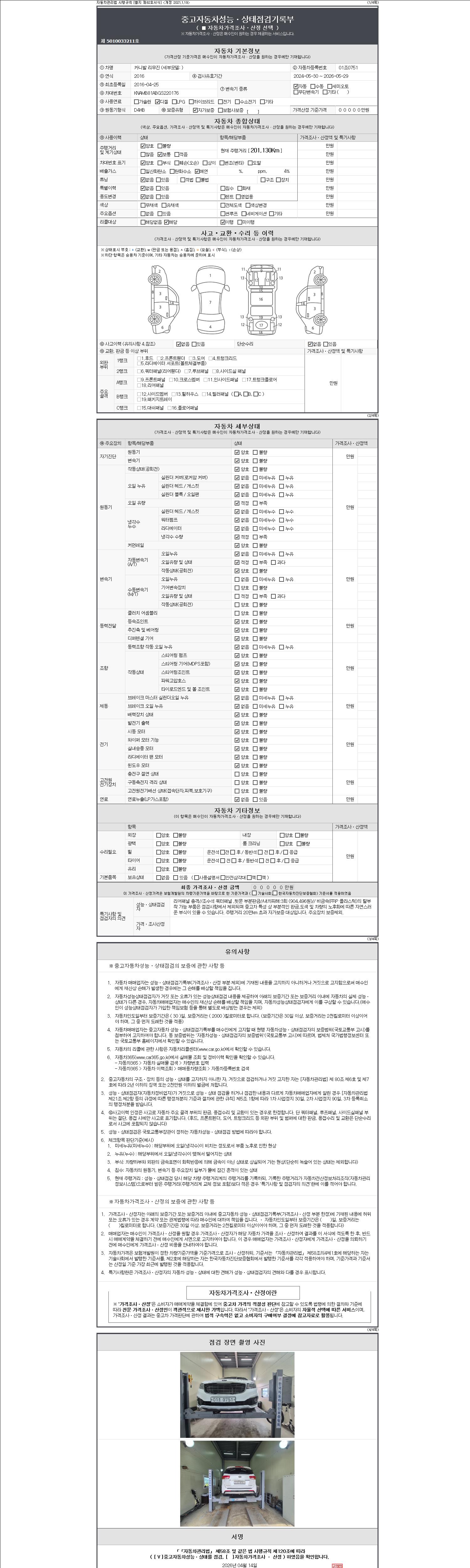 - 2. 차량 등록증이나 성능점검지 등을 상담자에게 요청및 확인하시고 사전에 미리 점검 하시기를 권유드립니다.