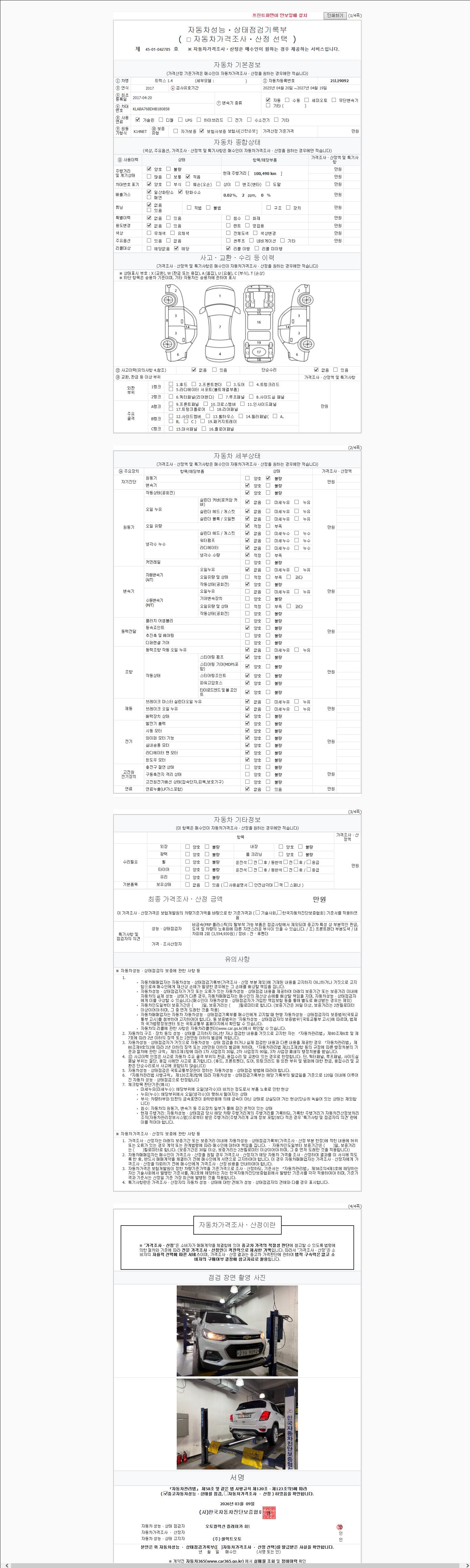 | 주행거리 | 100,490 km | 차량번호 | 21나9092 | 사고유무 | 성능기록부 참조 | 제시번호 | 제 2147483647 호 |
