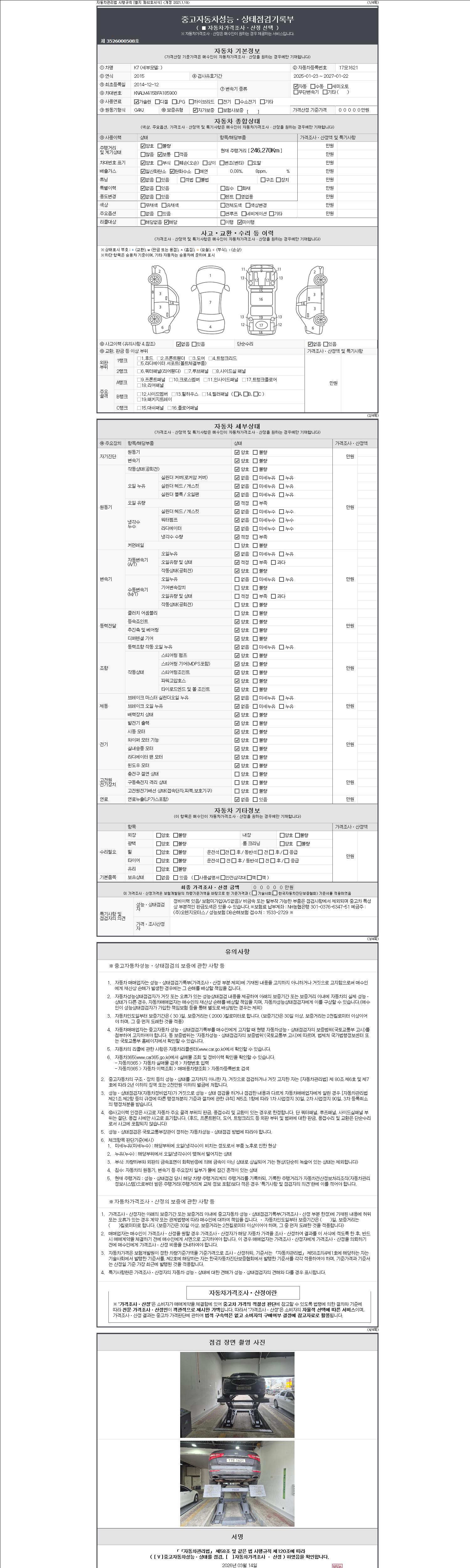 - 2. 차량 등록증이나 성능점검지 등을 상담자에게 요청및 확인하시고 사전에 미리 점검 하시기를 권유드립니다.