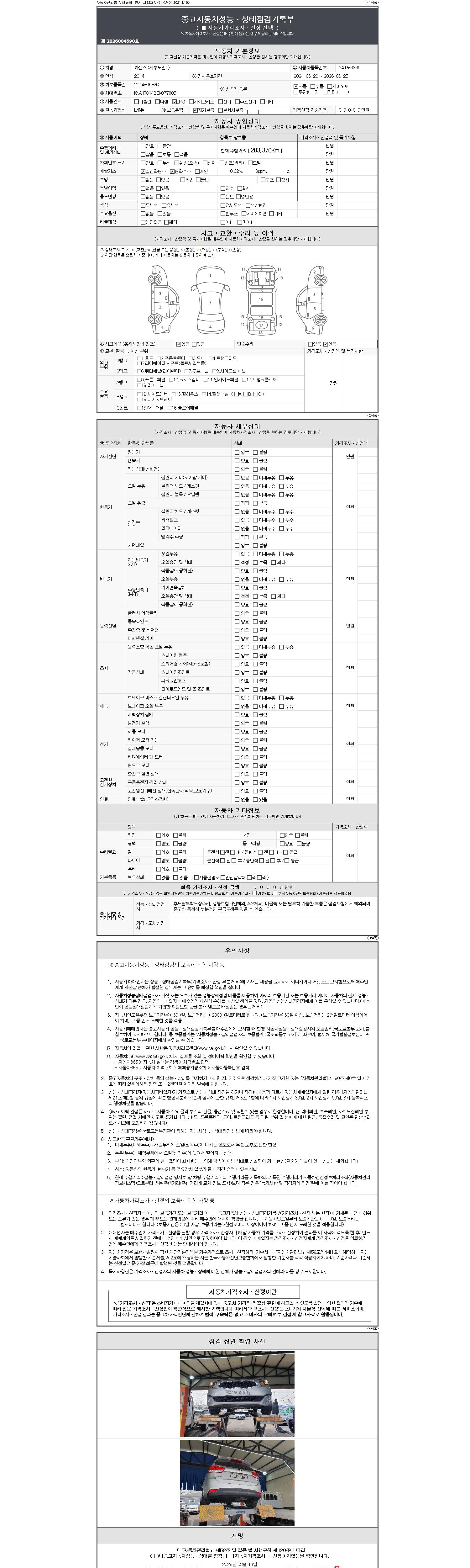 - 2. 차량 등록증이나 성능점검지 등을 상담자에게 요청및 확인하시고 사전에 미리 점검 하시기를 권유드립니다.