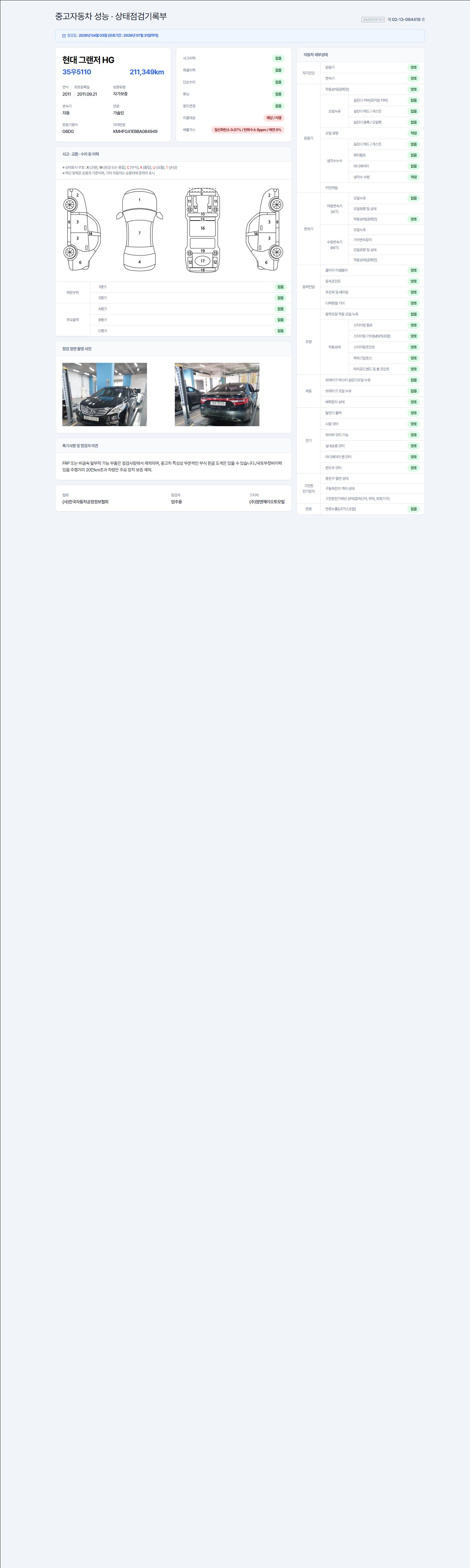 - 사고유무 : 성능기록부 참조