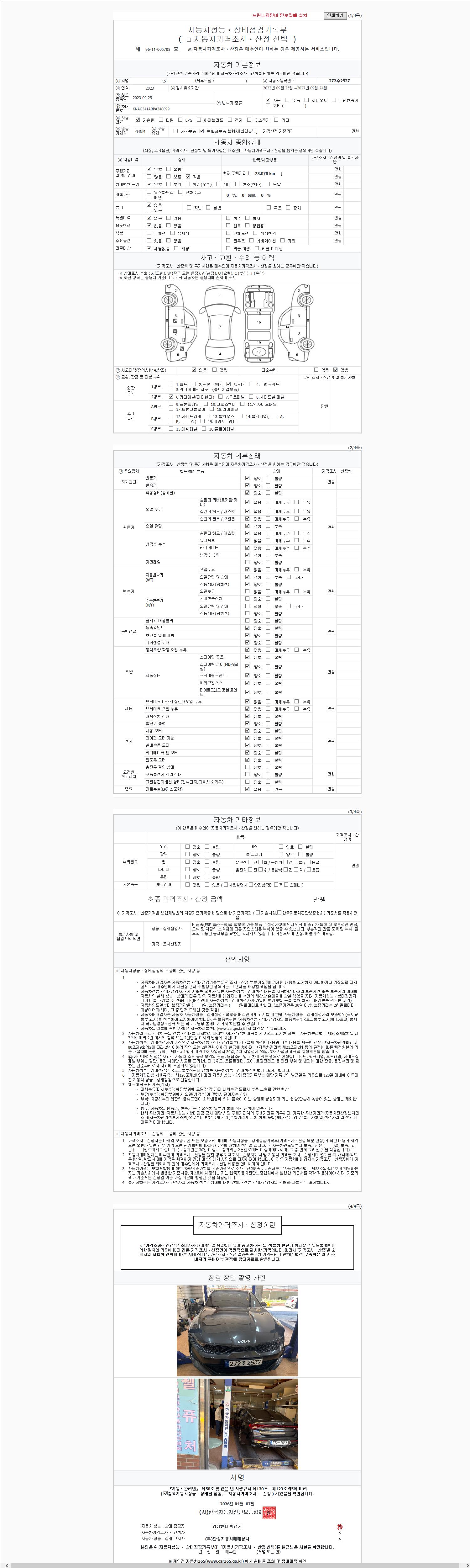 - 2. 차량 등록증이나 성능점검지 등을 상담자에게 요청및 확인하시고 사전에 미리 점검 하시기를 권유드립니다.