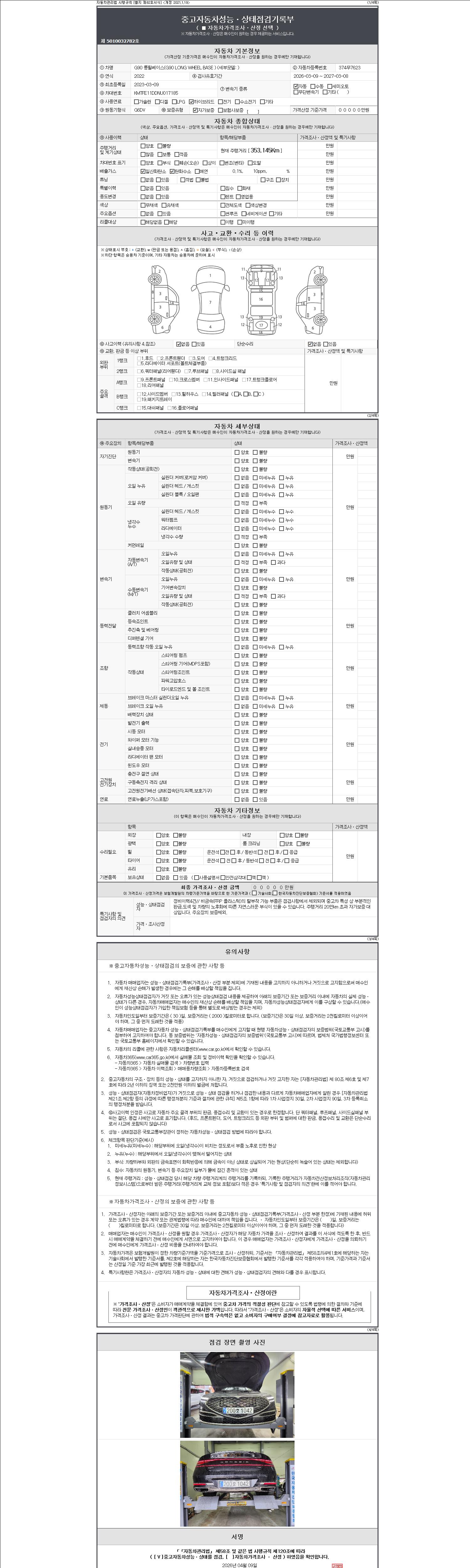 - 2. 차량 등록증이나 성능점검지 등을 상담자에게 요청및 확인하시고 사전에 미리 점검 하시기를 권유드립니다.