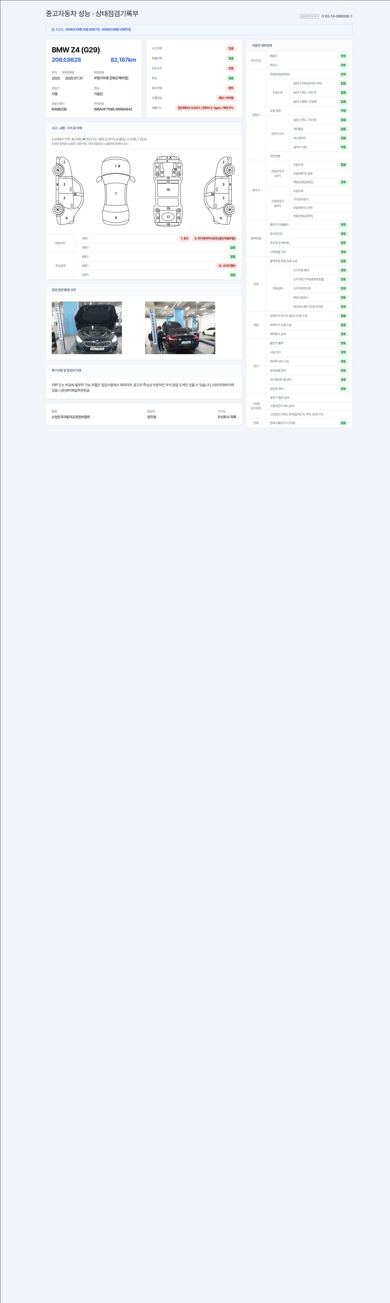 - 사고유무 : 성능기록부 참조