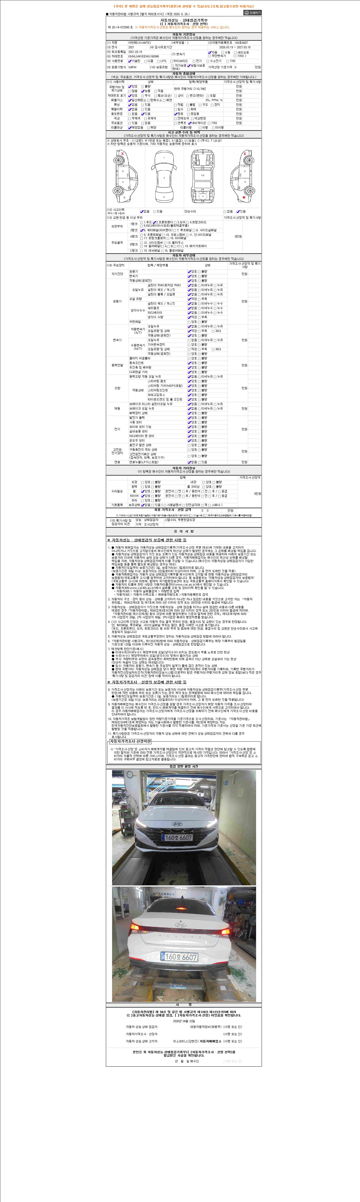 - 2. 차량 등록증이나 성능점검지 등을 상담자에게 요청및 확인하시고 사전에 미리 점검 하시기를 권유드립니다.