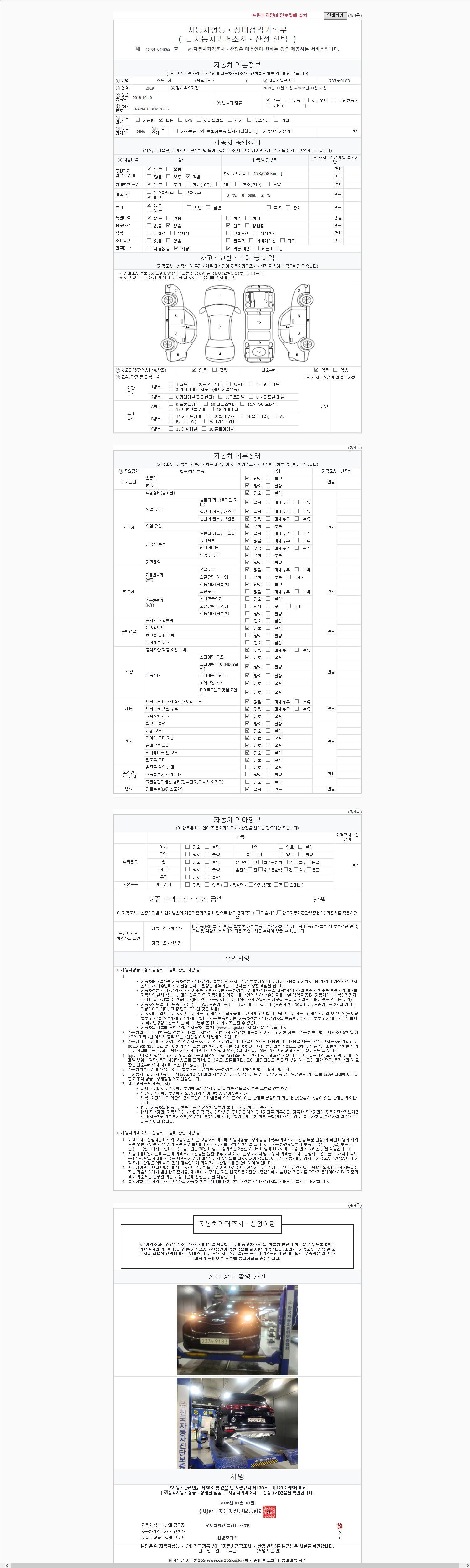 - 사고유무 : 성능기록부 참조