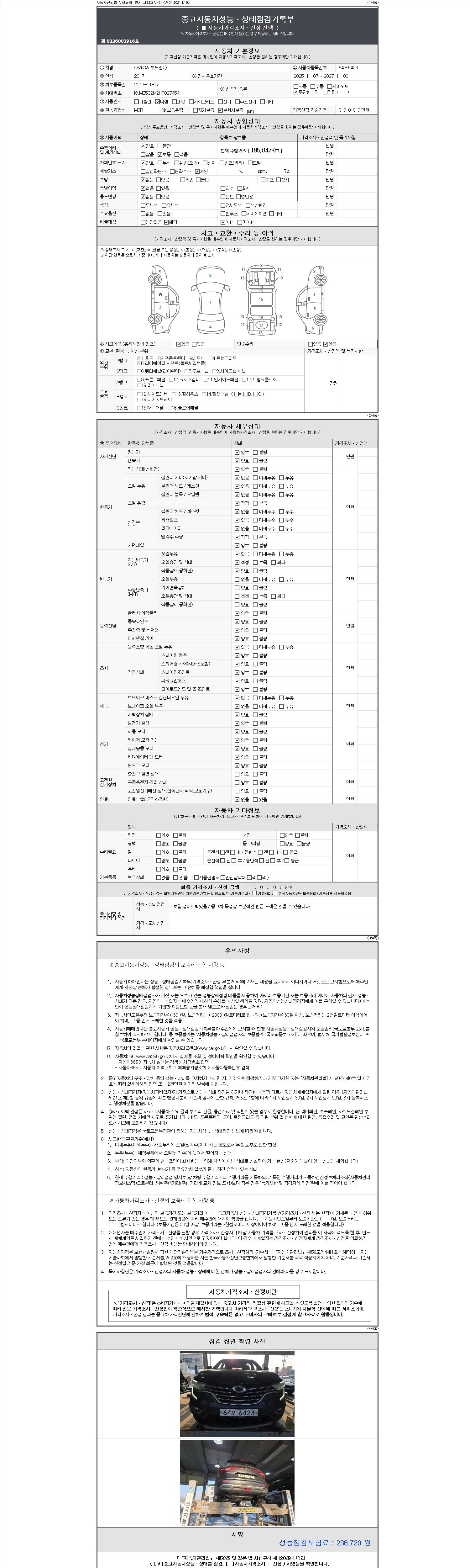 - 사고유무 : 성능기록부 참조