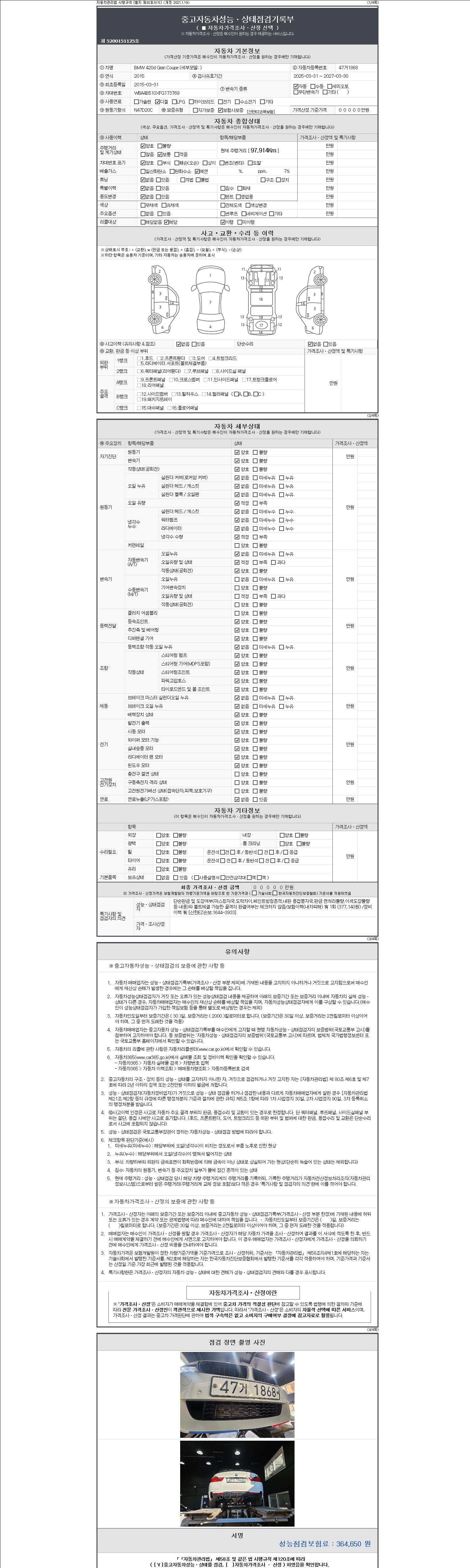- 2. 차량 등록증이나 성능점검지 등을 상담자에게 요청및 확인하시고 사전에 미리 점검 하시기를 권유드립니다.
