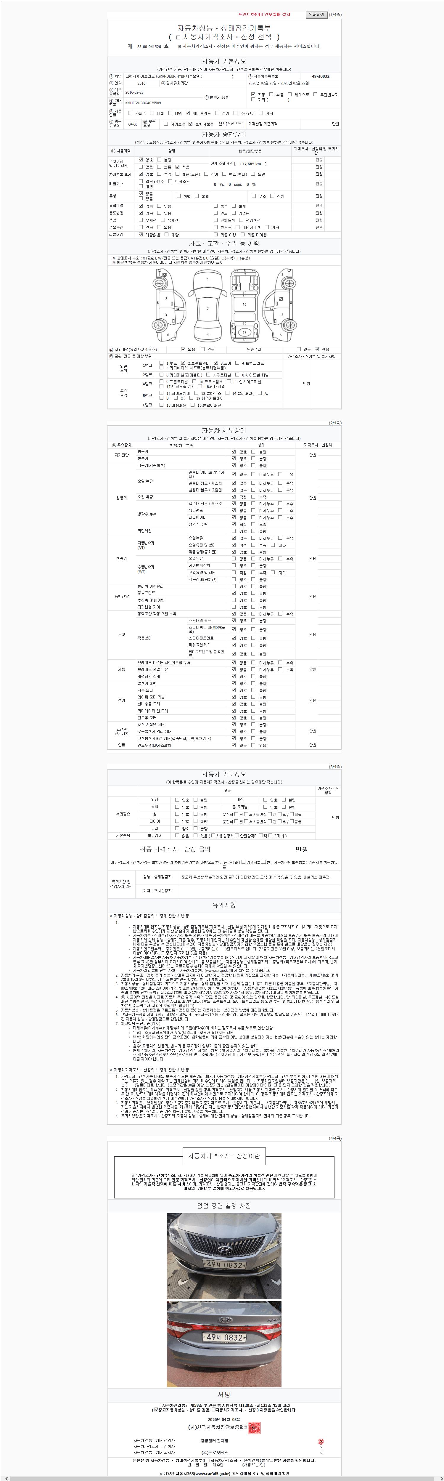 - 사고유무 : 성능기록부 참조