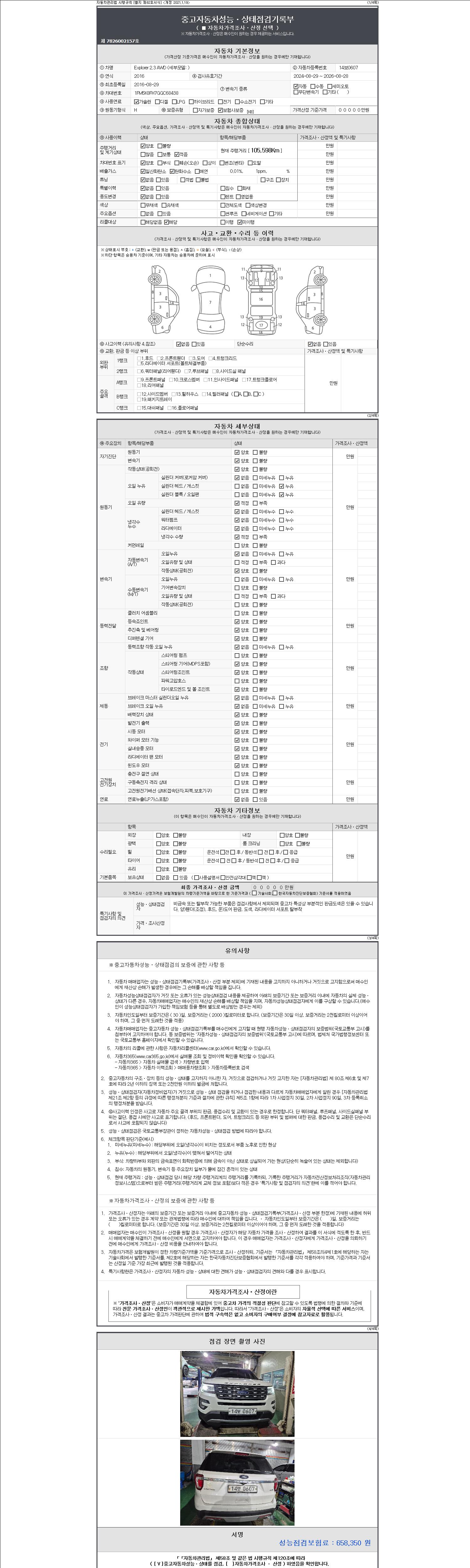 -중고자동차 매매업자를 통해 차량을 구입하실 경우 반드시 "중고자동차 성능, 상태점검 기록부"를 교뷰 받으셔야 하며, 매매업자는 반드시 의무 교부 하여야 압니다.