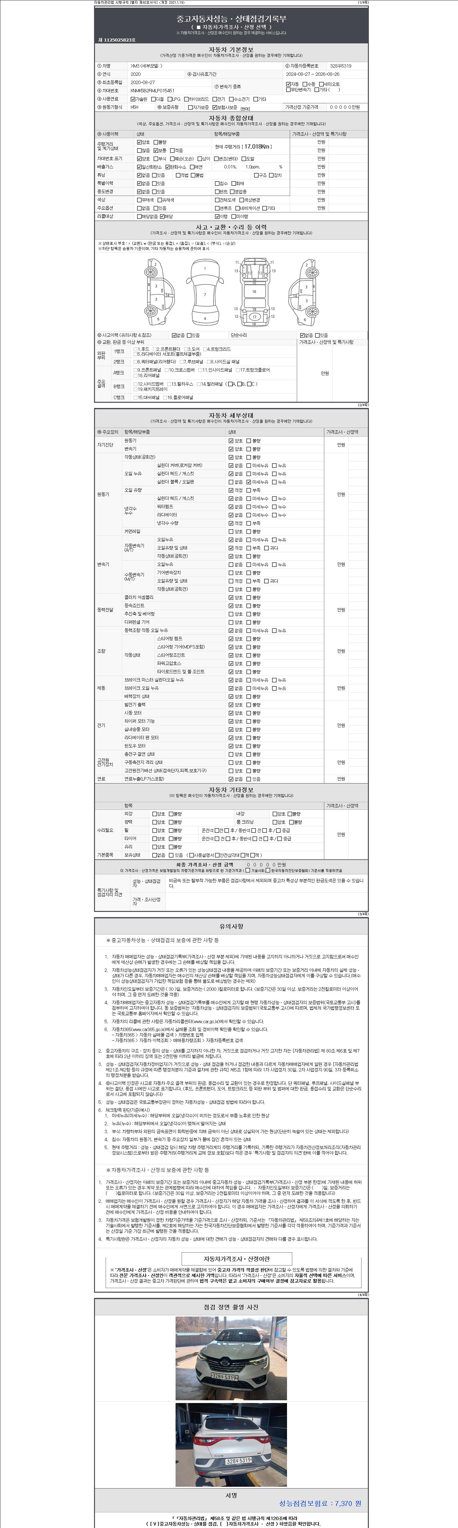 | 주행거리 | 17,018 km | 차량번호 | 328우5319 | 사고유무 | 성능기록부 참조 | 제시번호 | 제 2147483647 호 |
