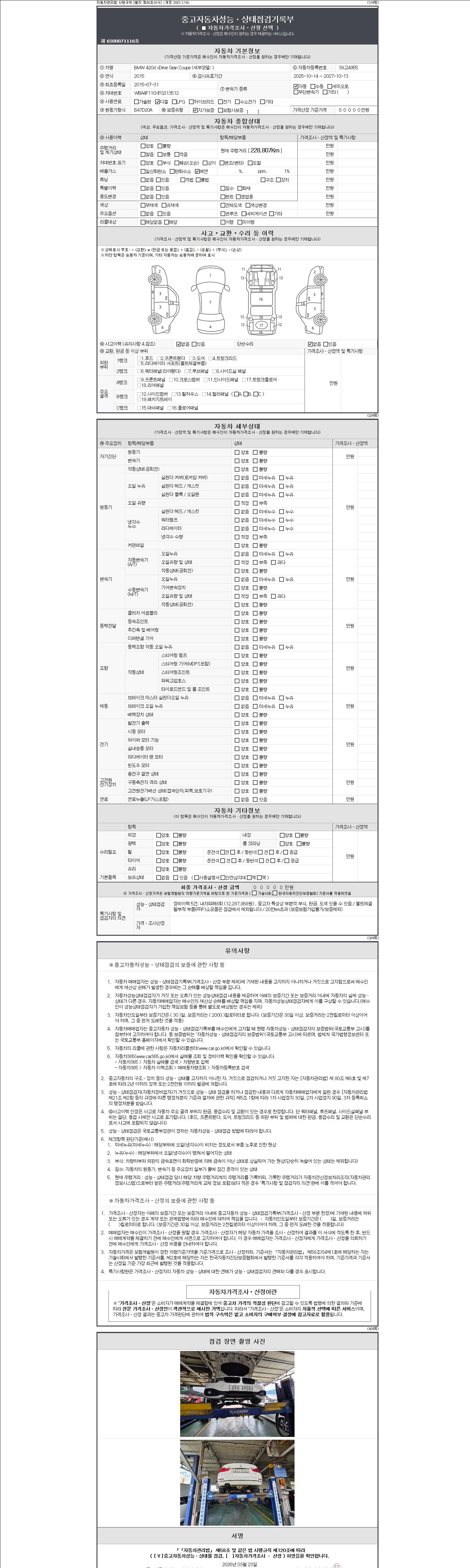 - 2. 차량 등록증이나 성능점검지 등을 상담자에게 요청및 확인하시고 사전에 미리 점검 하시기를 권유드립니다.