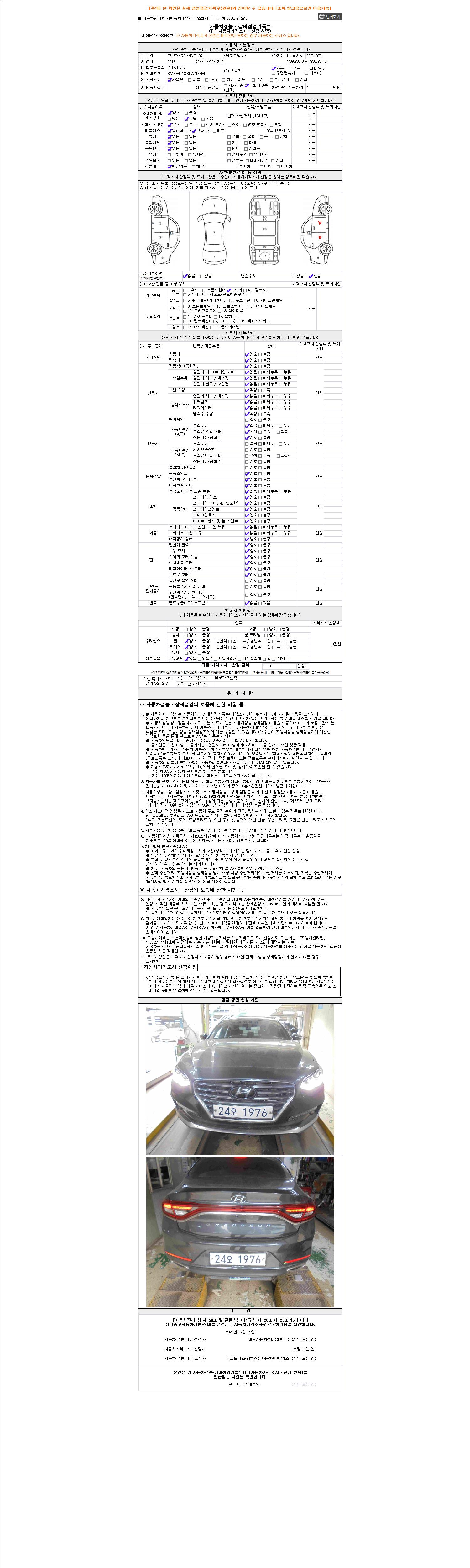 - 2. 차량 등록증이나 성능점검지 등을 상담자에게 요청및 확인하시고 사전에 미리 점검 하시기를 권유드립니다.