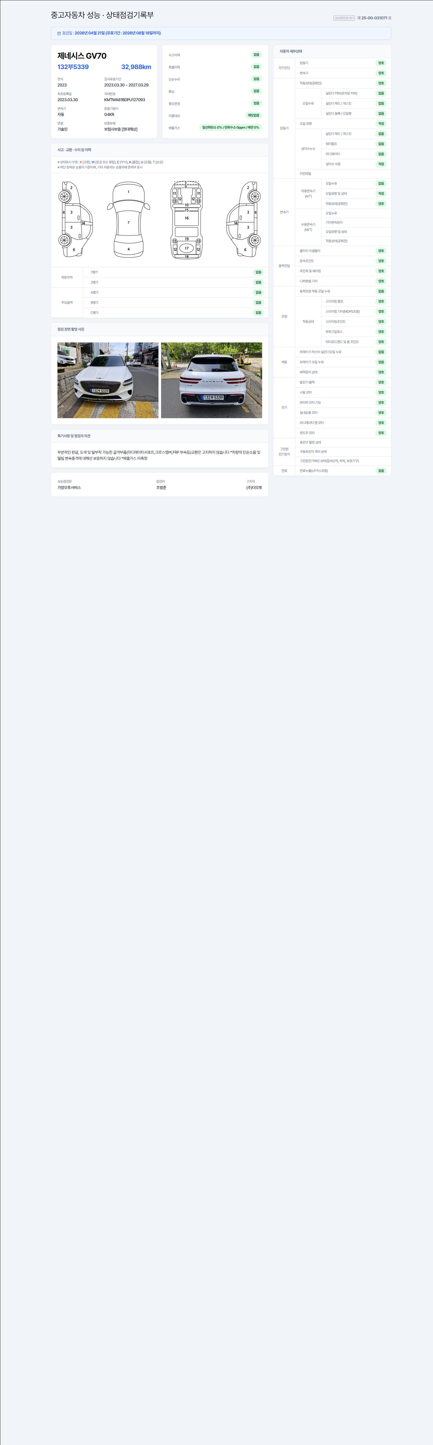 - 사고유무 : 성능기록부 참조