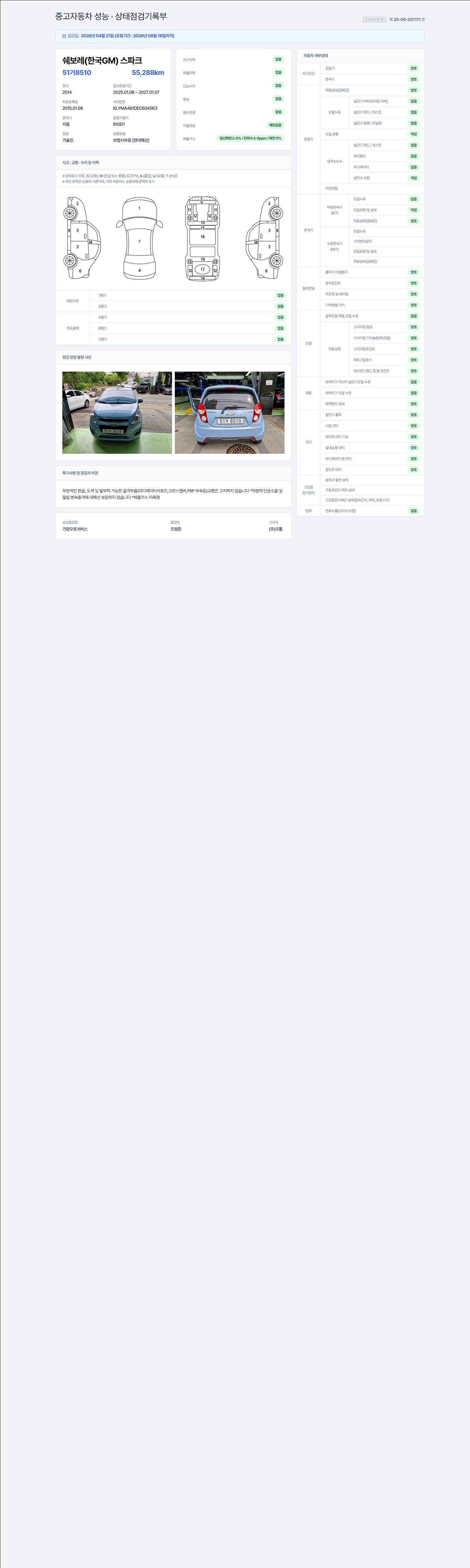 - 사고유무 : 성능기록부 참조