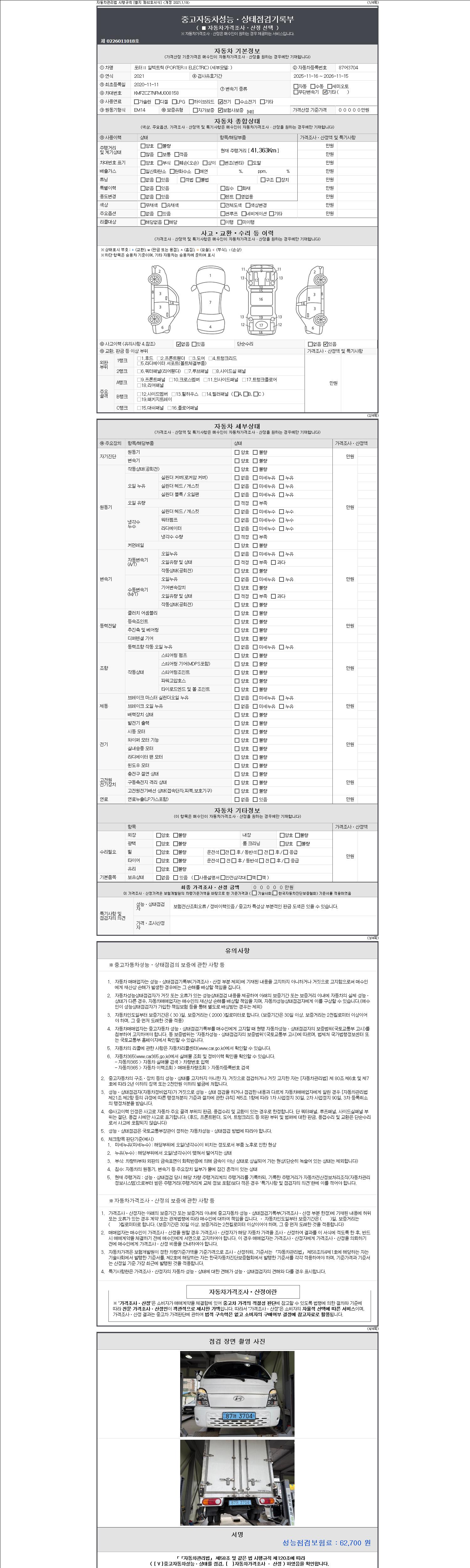 | 주행거리 | 41,363 km | 차량번호 | 87어3704 | 사고유무 | 성능기록부 참조 | 제시번호 | 제 2147483647 호 |