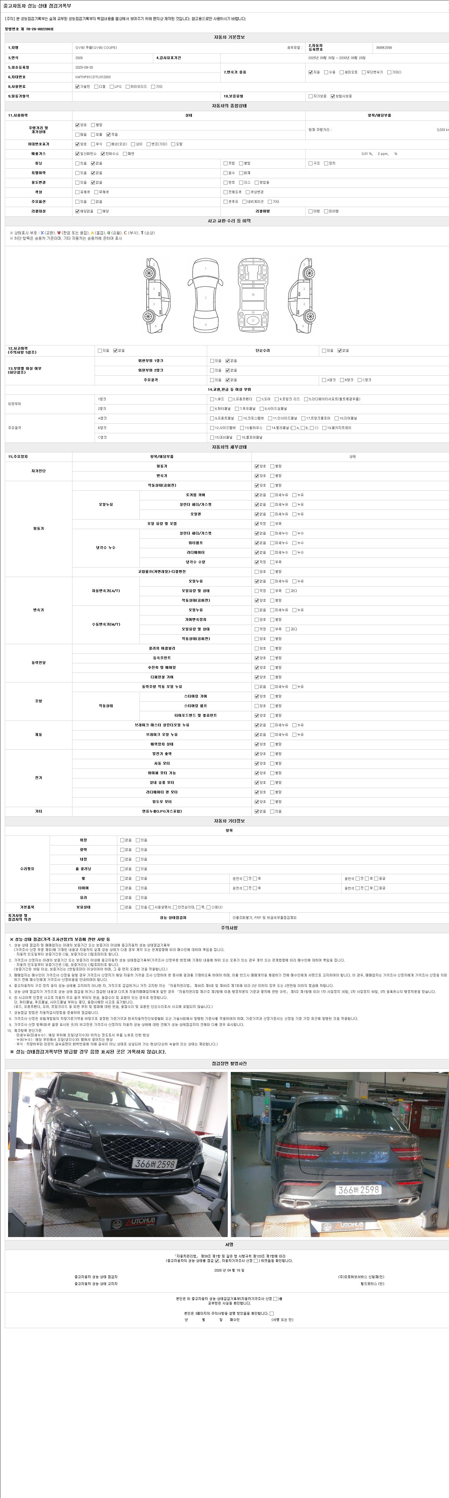 - 2. 차량 등록증이나 성능점검지 등을 상담자에게 요청및 확인하시고 사전에 미리 점검 하시기를 권유드립니다.