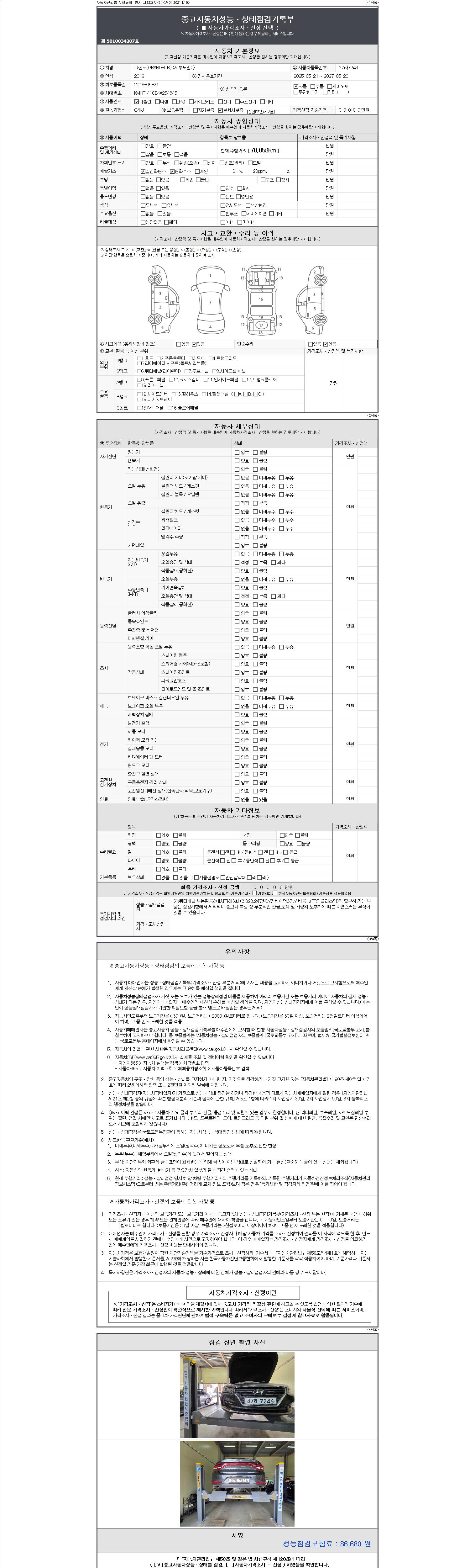 - 2. 차량 등록증이나 성능점검지 등을 상담자에게 요청및 확인하시고 사전에 미리 점검 하시기를 권유드립니다.