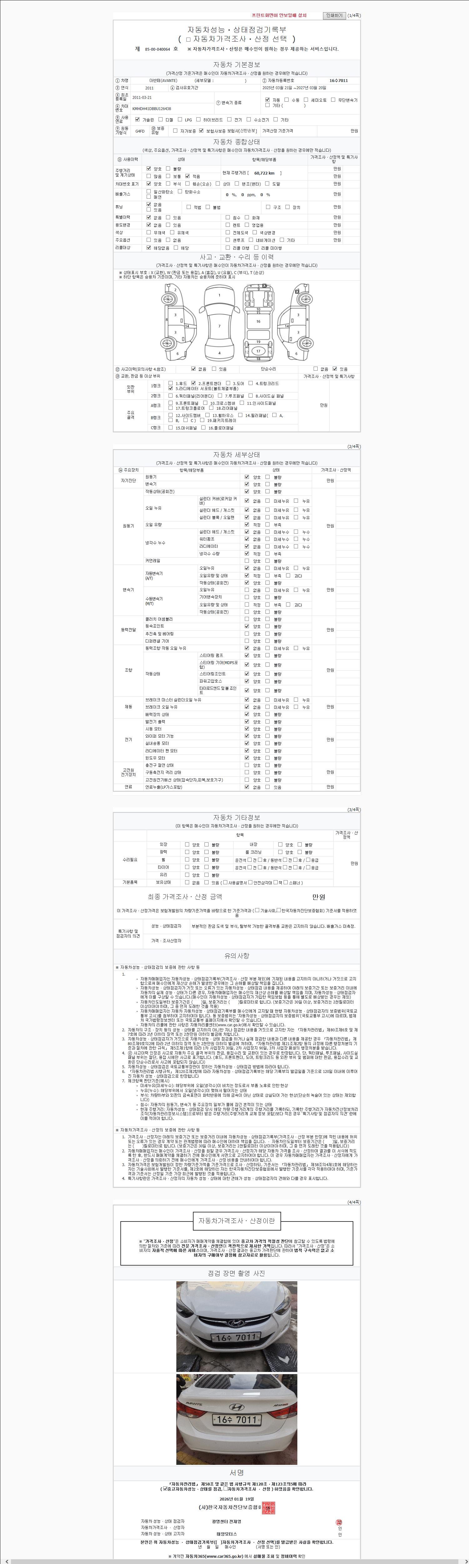 | 주행거리 | 60,708 km | 차량번호 | 16수7011 | 사고유무 | 성능기록부 참조 | 제시번호 | 제 2147483647 호 |