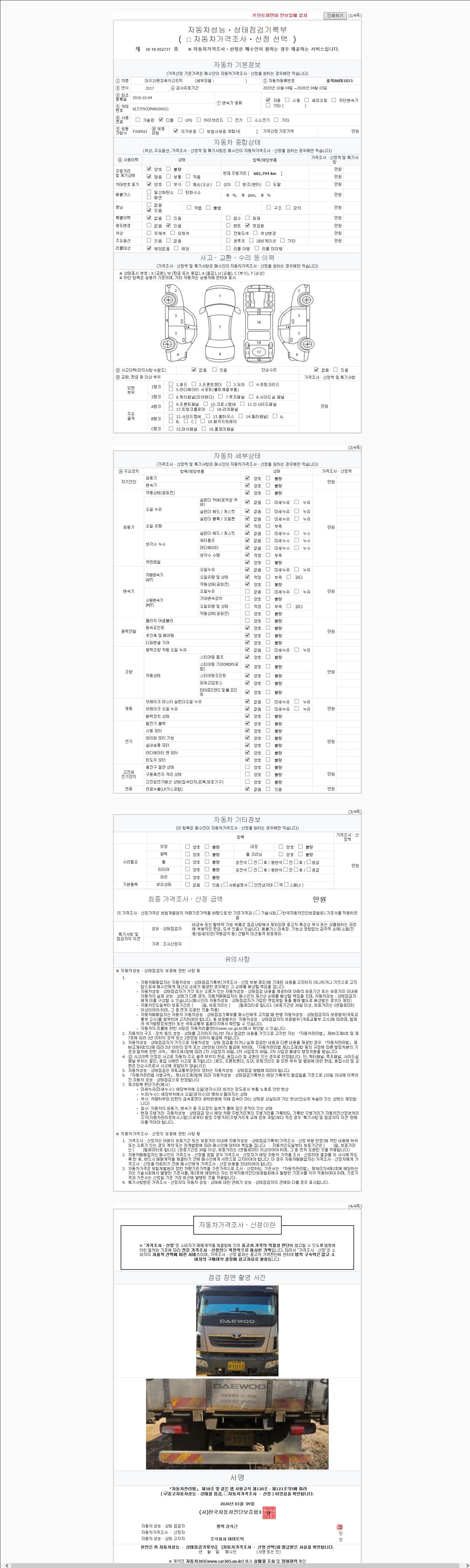 | 주행거리 | 681,794 km | 차량번호 | 90부9693 | 사고유무 | 성능기록부 참조 | 제시번호 | 제 2147483647 호 |