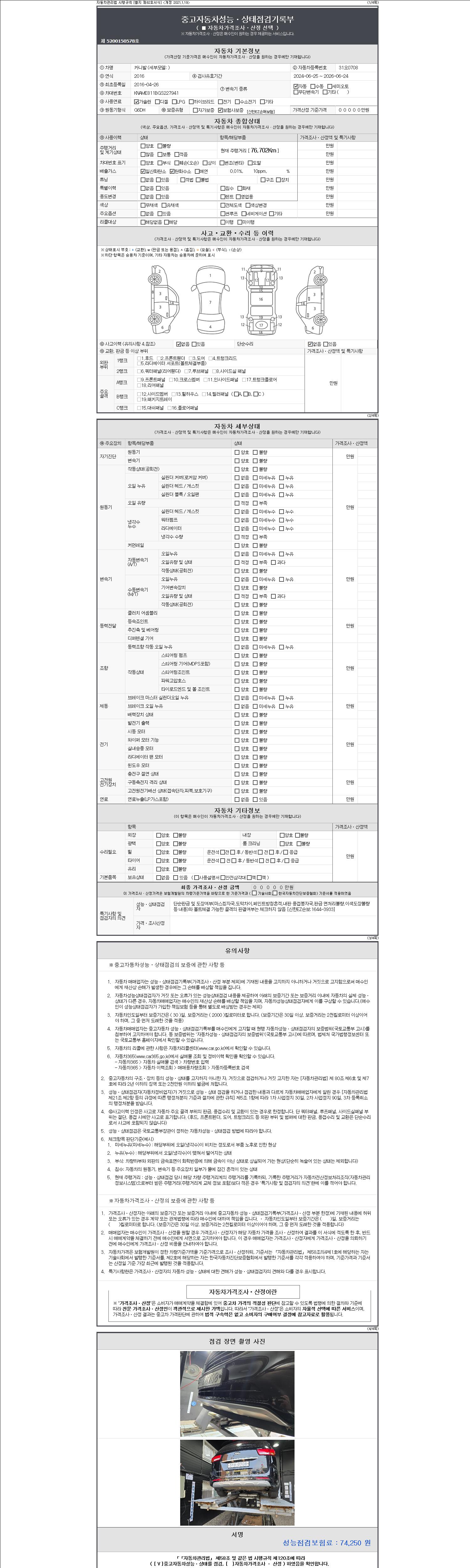 | 주행거리 | 76,702 km | 차량번호 | 31오0708 | 사고유무 | 성능기록부 참조 | 제시번호 | 제 2147483647 호 |