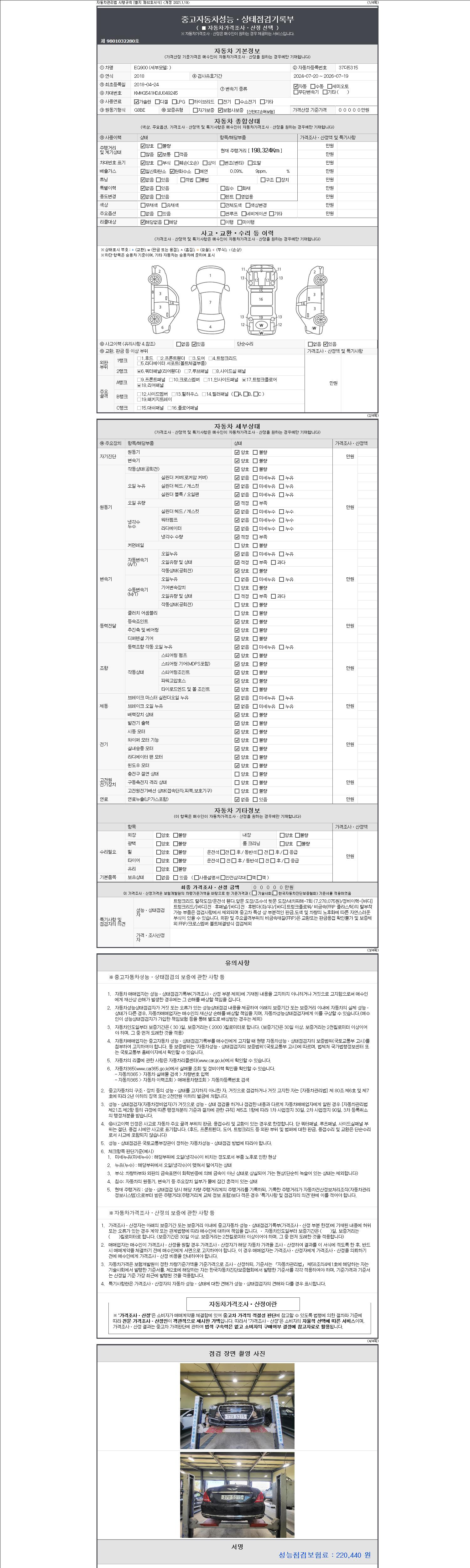 - 사고유무 : 성능기록부 참조