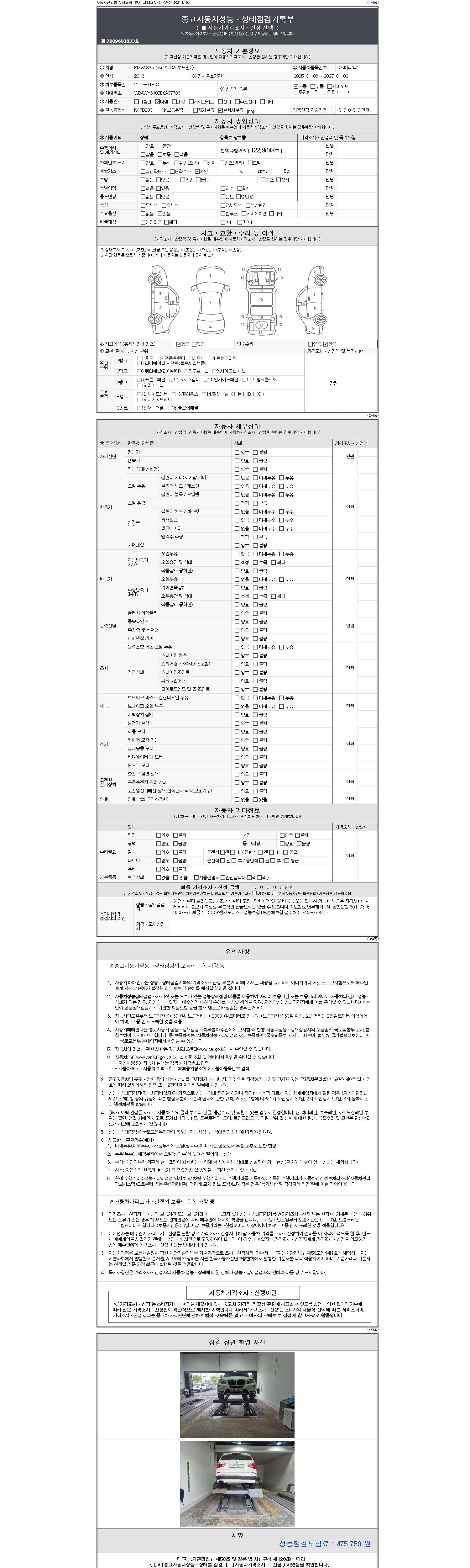 - 2. 차량 등록증이나 성능점검지 등을 상담자에게 요청및 확인하시고 사전에 미리 점검 하시기를 권유드립니다.