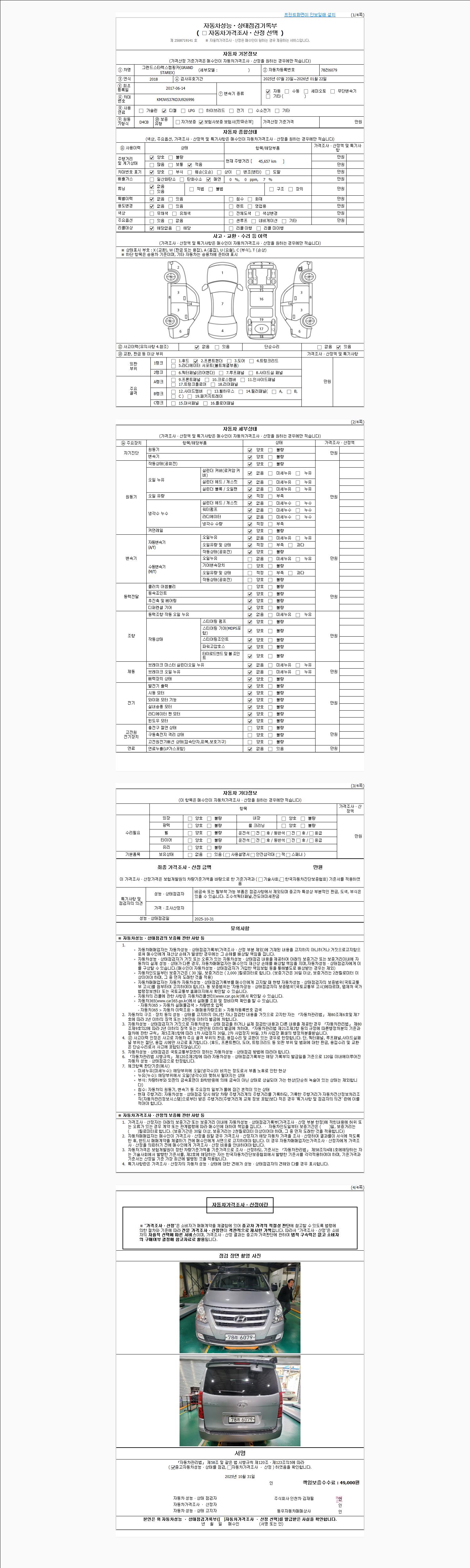 | 주행거리 | 45,657 km | 차량번호 | 78러6079 | 사고유무 | 성능기록부 참조 | 제시번호 | 제 2025059596 호 |