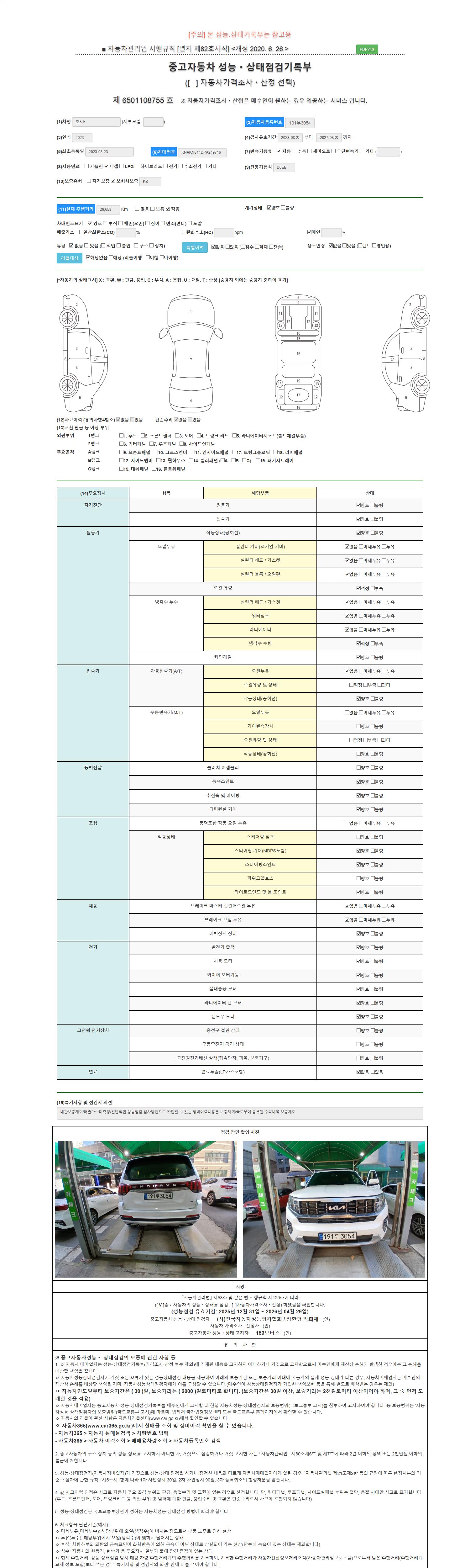 2. 차량 등록증이나 성능점검지 등을 상담자에게 요청및 확인하시고 사전에 미리 점검 하시기를 권유드립니다.