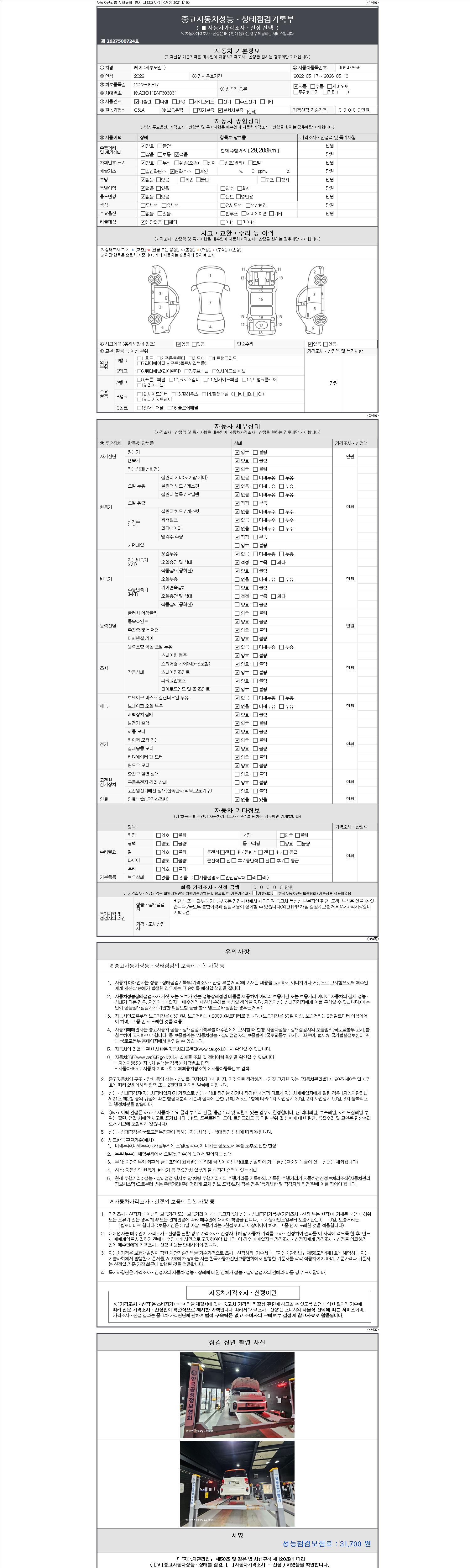 2. 차량 등록증이나 성능점검지 등을 상담자에게 요청및 확인하시고 사전에 미리 점검 하시기를 권유드립니다.