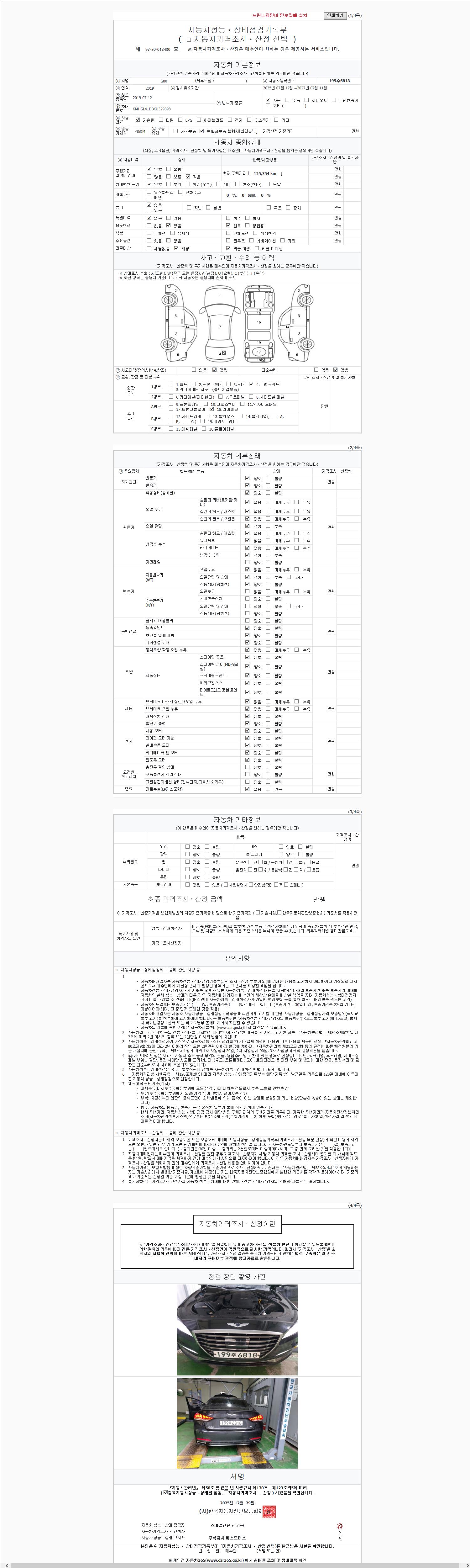 2. 차량 등록증이나 성능점검지 등을 상담자에게 요청및 확인하시고 사전에 미리 점검 하시기를 권유드립니다.