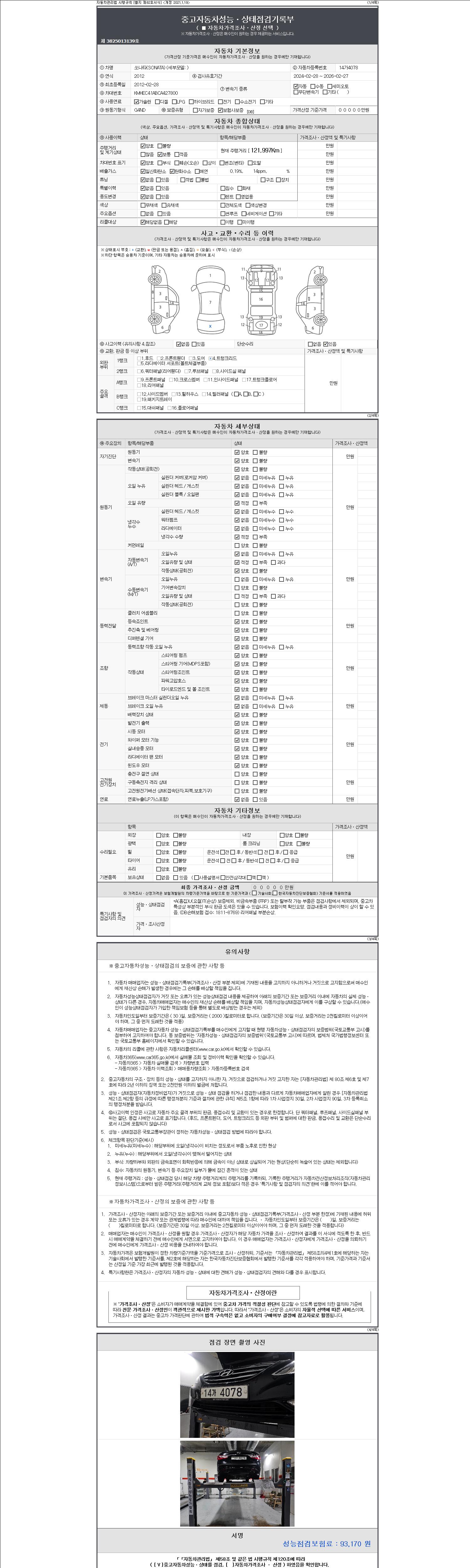 -중고자동차 매매업자를 통해 차량을 구입하실 경우 반드시 "중고자동차 성능, 상태점검 기록부"를 교뷰 받으셔야 하며, 매매업자는 반드시 의무 교부 하여야 압니다.