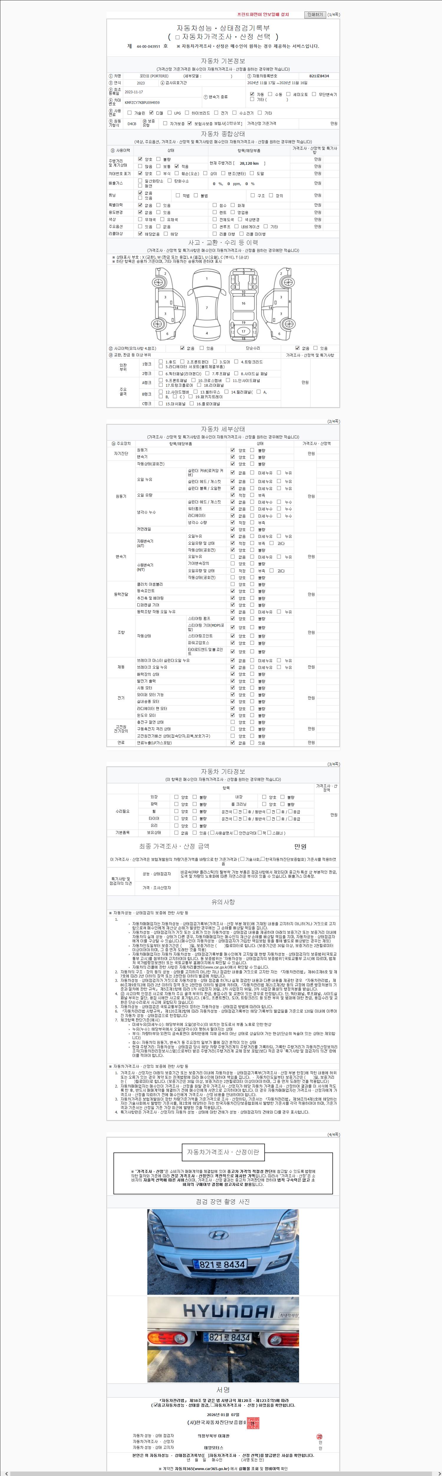 -중고자동차 매매업자를 통해 차량을 구입하실 경우 반드시 "중고자동차 성능, 상태점검 기록부"를 교뷰 받으셔야 하며, 매매업자는 반드시 의무 교부 하여야 압니다.