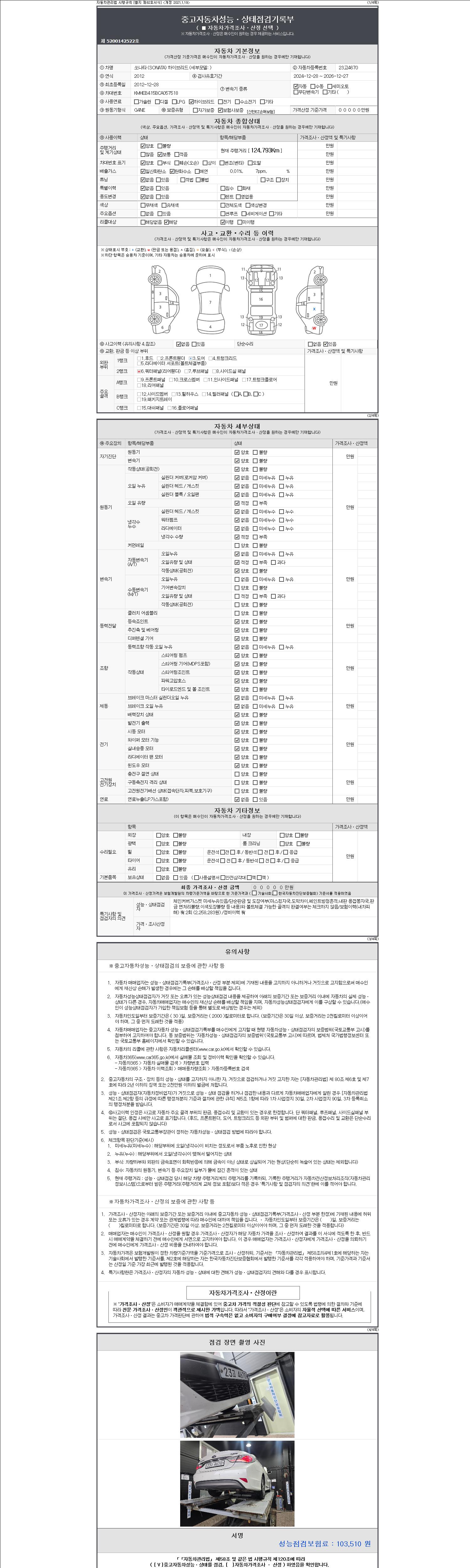 -중고자동차 매매업자를 통해 차량을 구입하실 경우 반드시 "중고자동차 성능, 상태점검 기록부"를 교뷰 받으셔야 하며, 매매업자는 반드시 의무 교부 하여야 압니다.