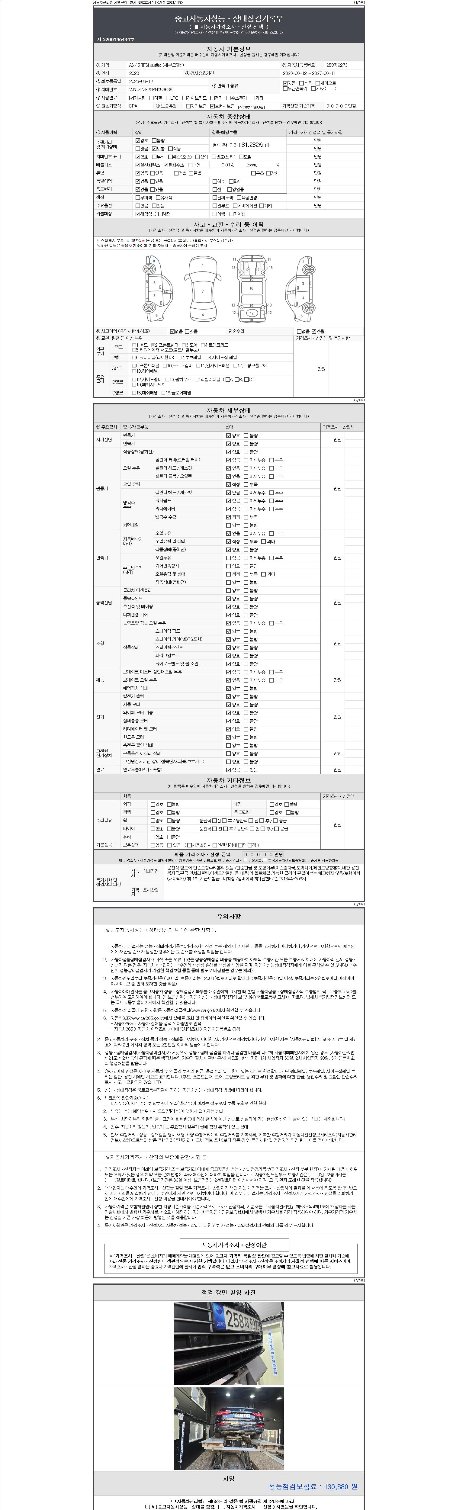 -중고자동차 매매업자를 통해 차량을 구입하실 경우 반드시 "중고자동차 성능, 상태점검 기록부"를 교뷰 받으셔야 하며, 매매업자는 반드시 의무 교부 하여야 압니다.