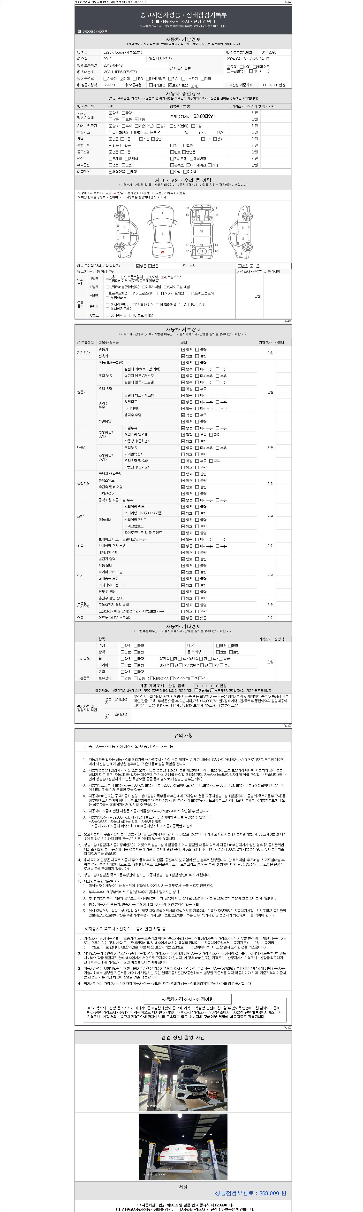 2. 차량 등록증이나 성능점검지 등을 상담자에게 요청및 확인하시고 사전에 미리 점검 하시기를 권유드립니다.