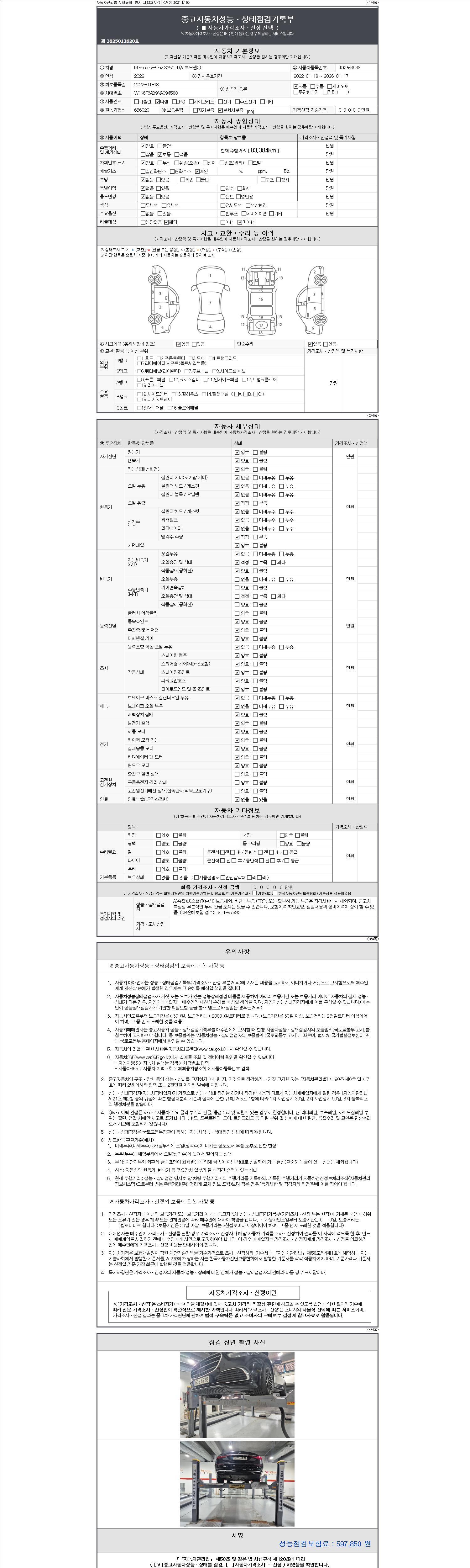 2. 차량 등록증이나 성능점검지 등을 상담자에게 요청및 확인하시고 사전에 미리 점검 하시기를 권유드립니다.