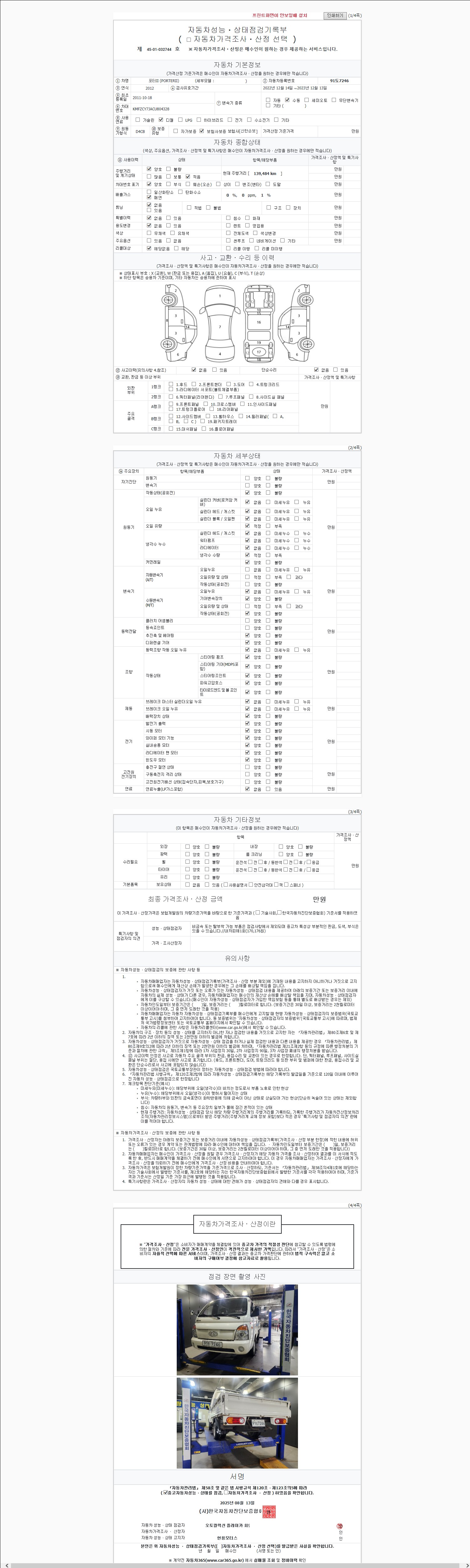 | 주행거리 | 139,426 km | 차량번호 | 91도7246 |
