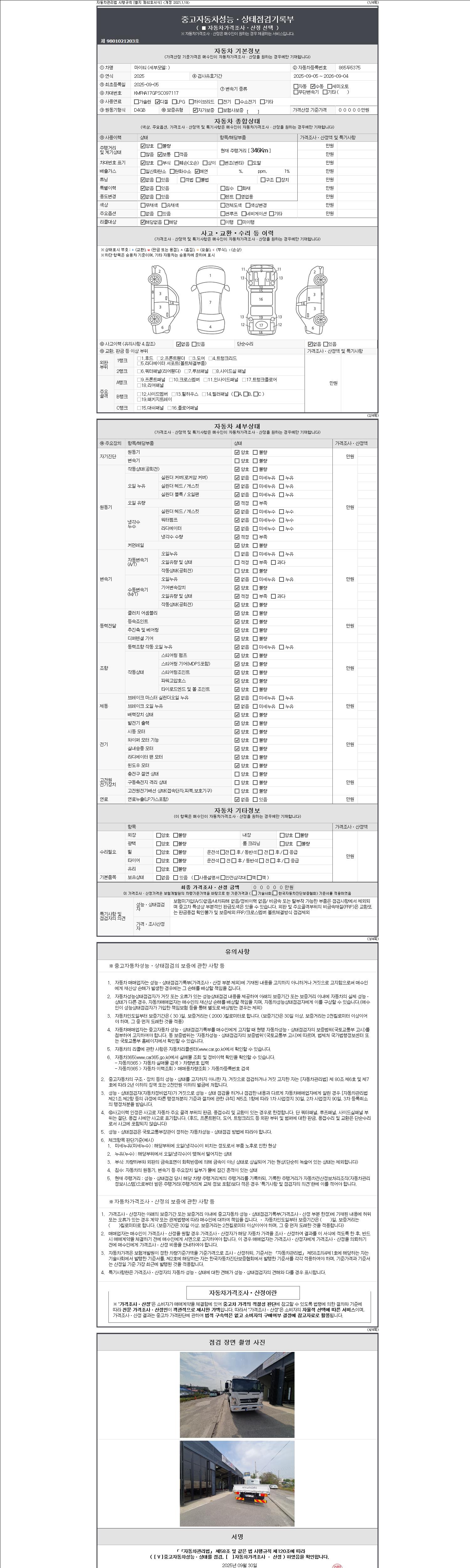 2. 차량 등록증이나 성능점검지 등을 상담자에게 요청및 확인하시고 사전에 미리 점검 하시기를 권유드립니다.