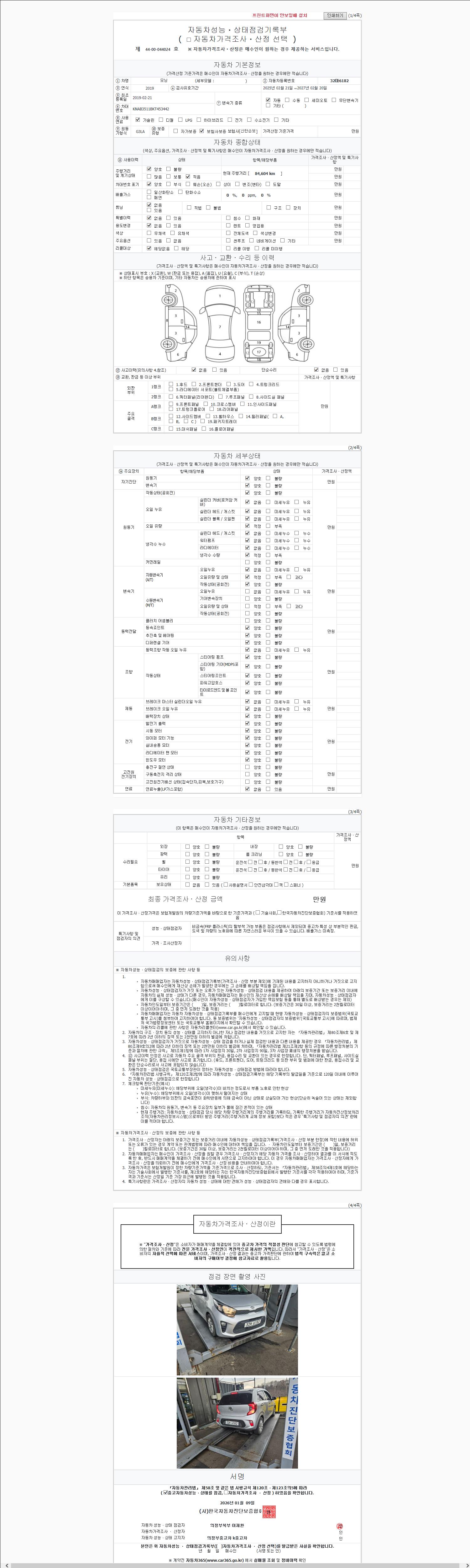 사고유무 성능기록부 참조 제시번호 제 2026004621 호