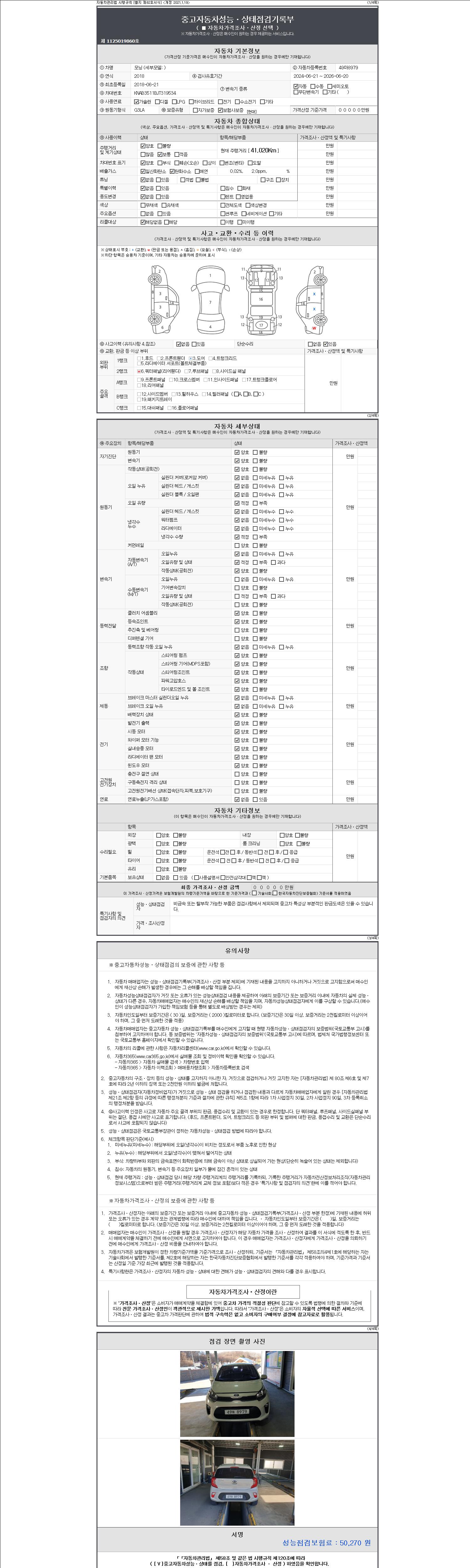 -중고자동차 매매업자를 통해 차량을 구입하실 경우 반드시 "중고자동차 성능, 상태점검 기록부"를 교뷰 받으셔야 하며, 매매업자는 반드시 의무 교부 하여야 압니다.