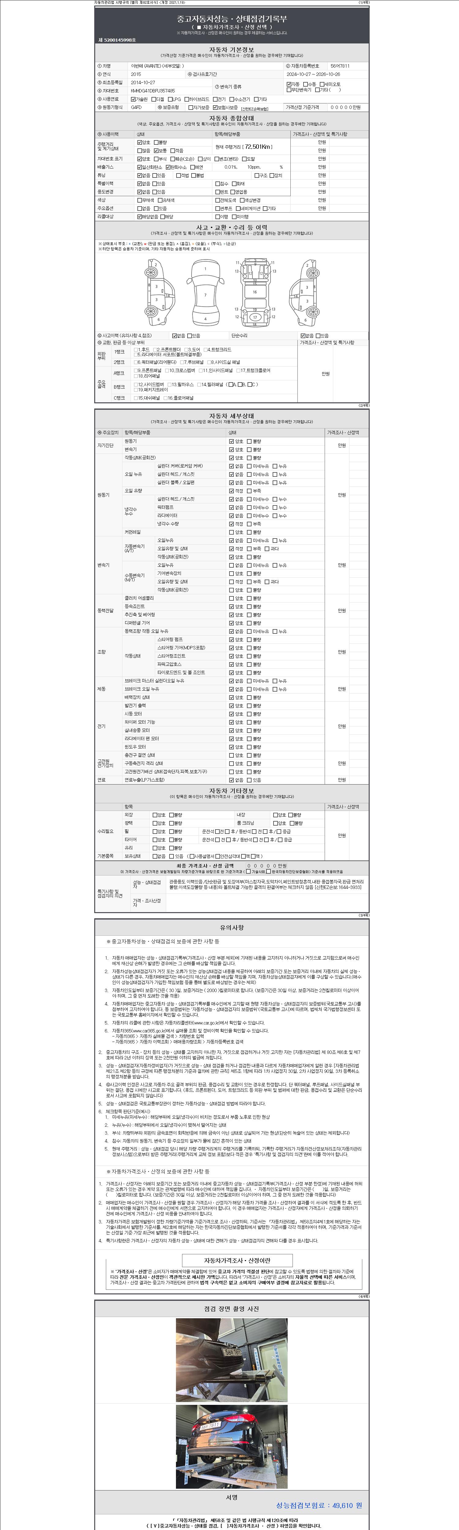 2. 차량 등록증이나 성능점검지 등을 상담자에게 요청및 확인하시고 사전에 미리 점검 하시기를 권유드립니다.